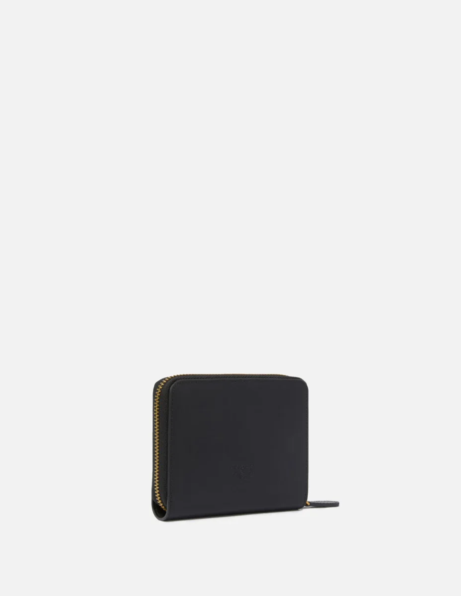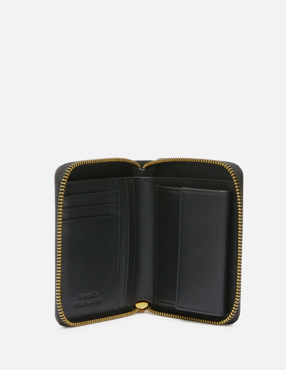 La cartera Pinko Love Birds Negra combina elegancia y funcionalidad. Su diseño sofisticado destaca por el icónico logo metálico de las aves y un cierre de cremallera seguro. Con compartimentos organizados, es ideal para llevar tarjetas y efectivo con estilo. Un accesorio imprescindible para cualquier ocasión.