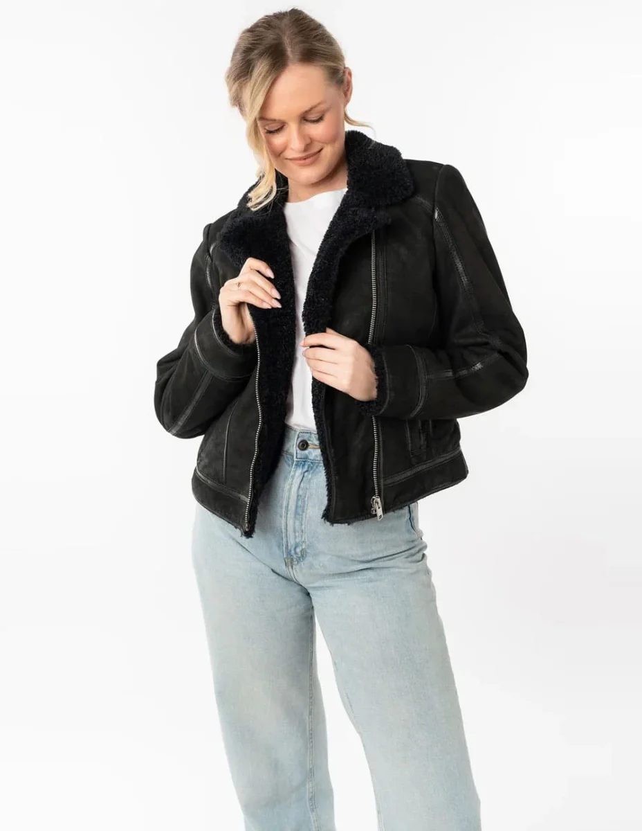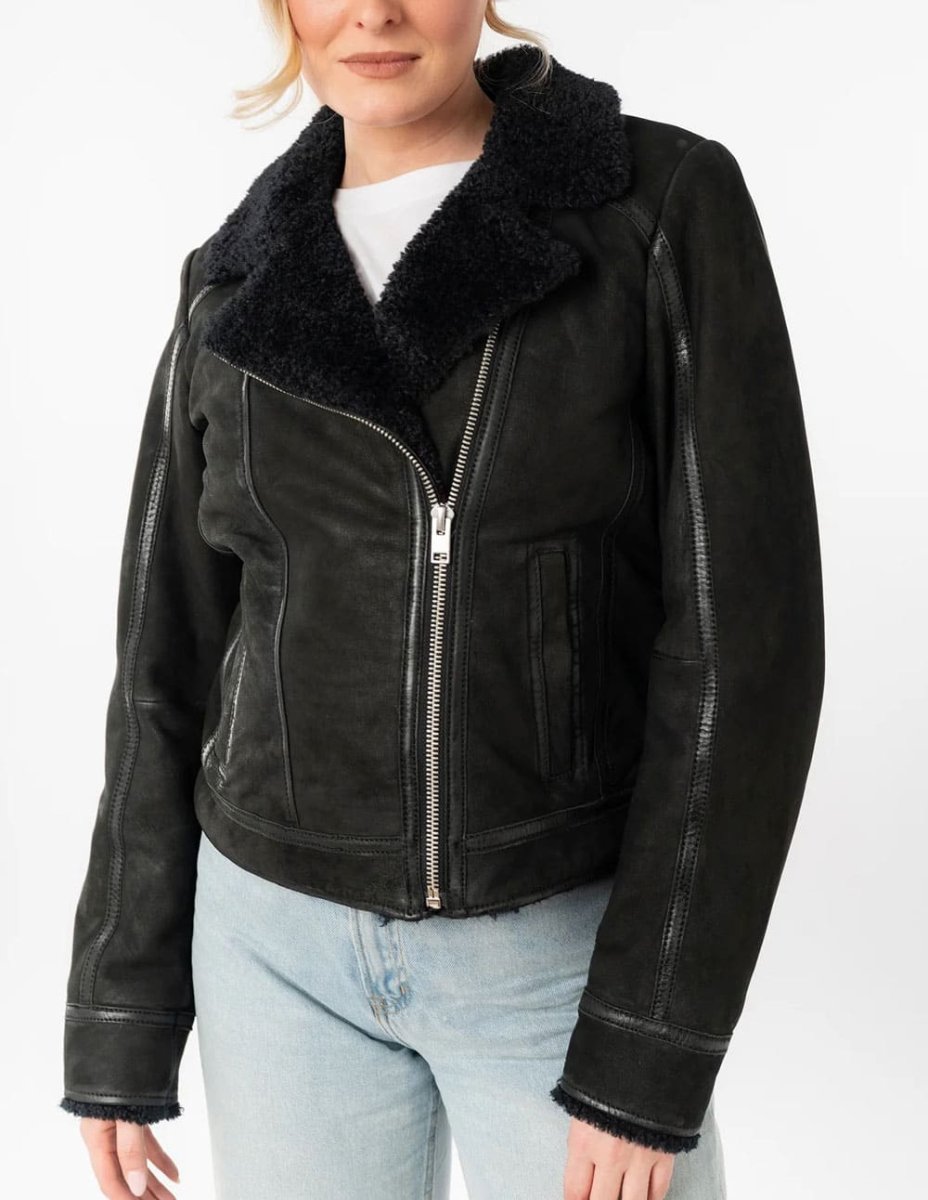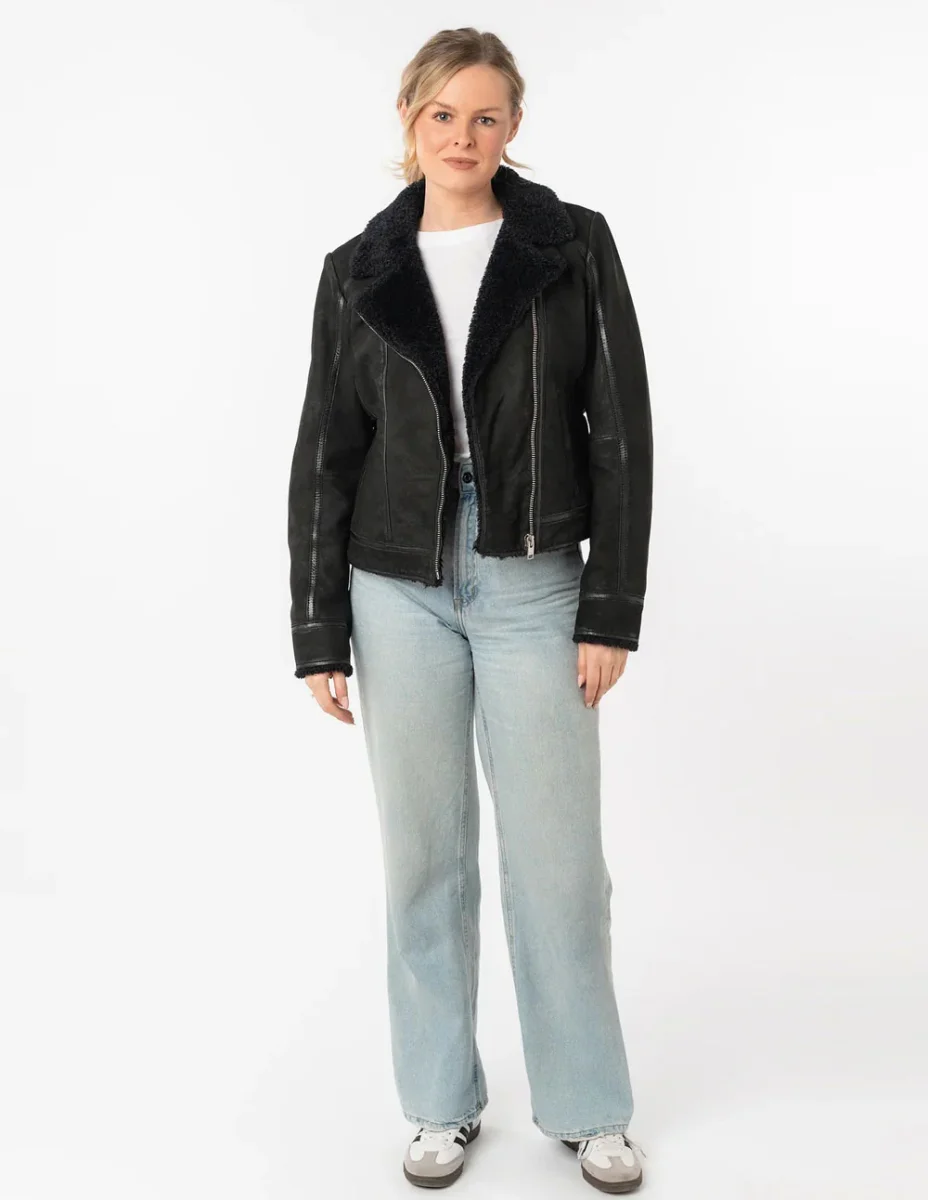 Cazadora Mauritius de Cuero Rila Negra Mujer