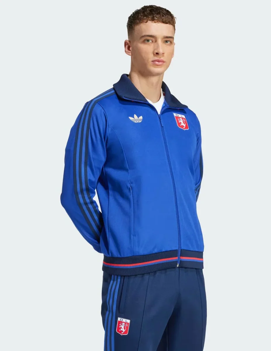 La Chaqueta adidas Olympique de Lyon Anniversary Azul celebra la pasión por el fútbol con un diseño exclusivo y conmemorativo. Su estilo deportivo combina comodidad y autenticidad, ideal para mostrar orgullo por el equipo. Con materiales de alta calidad, es perfecta para lucir en el día a día o en ocasiones especiales.