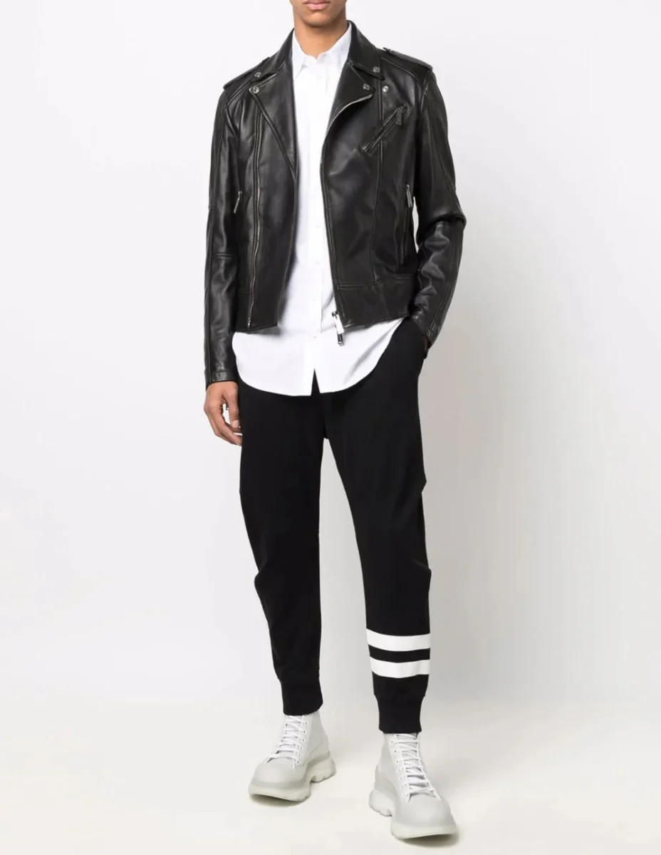 La Chaqueta Dsquared2 Biker de Piel Negra combina actitud rebelde y lujo contemporáneo en una prenda icónica. Confeccionada en piel de alta calidad, ofrece un ajuste ceñido y detalles metálicos que refuerzan su estilo motero. Ideal para destacar con carácter, añade sofisticación a cualquier look urbano.