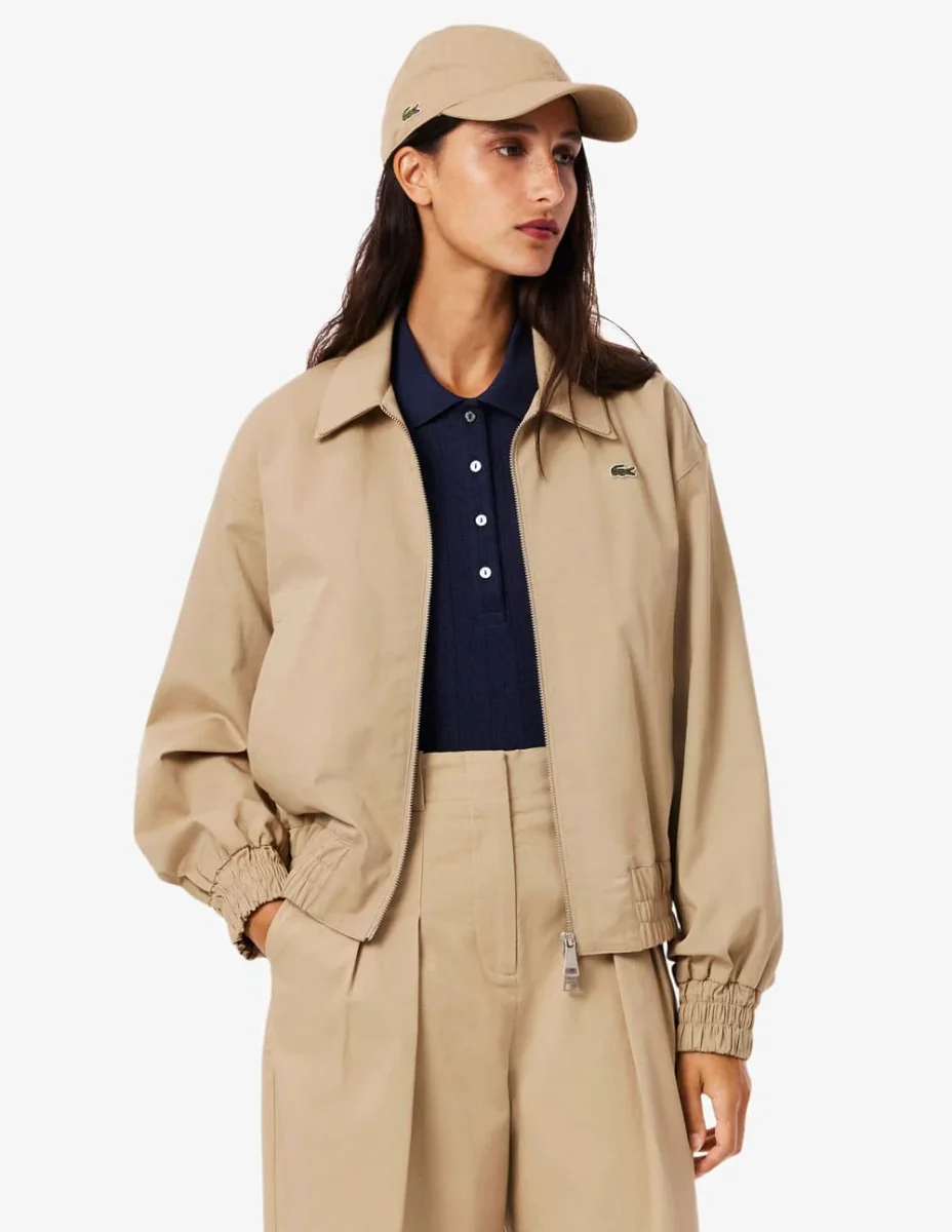 La Chaqueta Lacoste de Tela de Gabardina Elástica Beige combina elegancia y funcionalidad en un diseño contemporáneo. Su tejido elástico ofrece libertad de movimiento y confort, mientras que su acabado refinado refleja el estilo clásico de la marca. Ideal para un look sofisticado y versátil en cualquier ocasión.