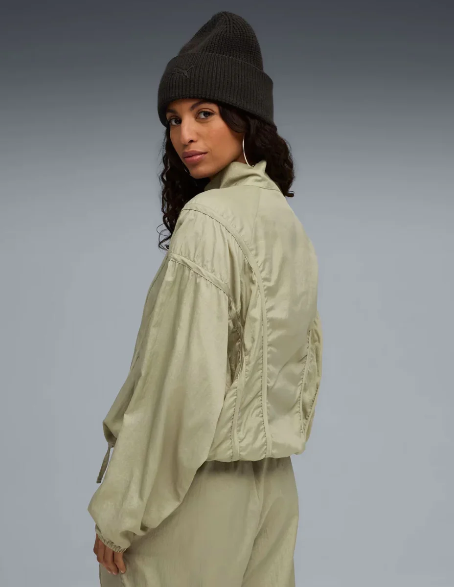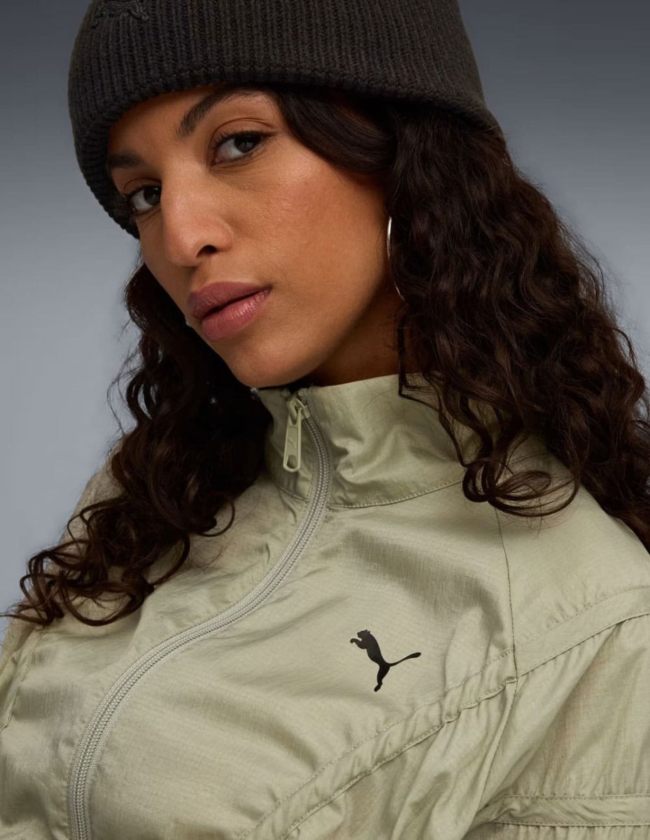 La Chaqueta Puma DARE TO Verde combina estilo contemporáneo y actitud con un diseño atrevido y femenino. Su corte moderno y detalles únicos la hacen ideal para destacar en cualquier ocasión. Confeccionada en materiales cómodos y ligeros, es perfecta para un look urbano con personalidad y esencia deportiva.