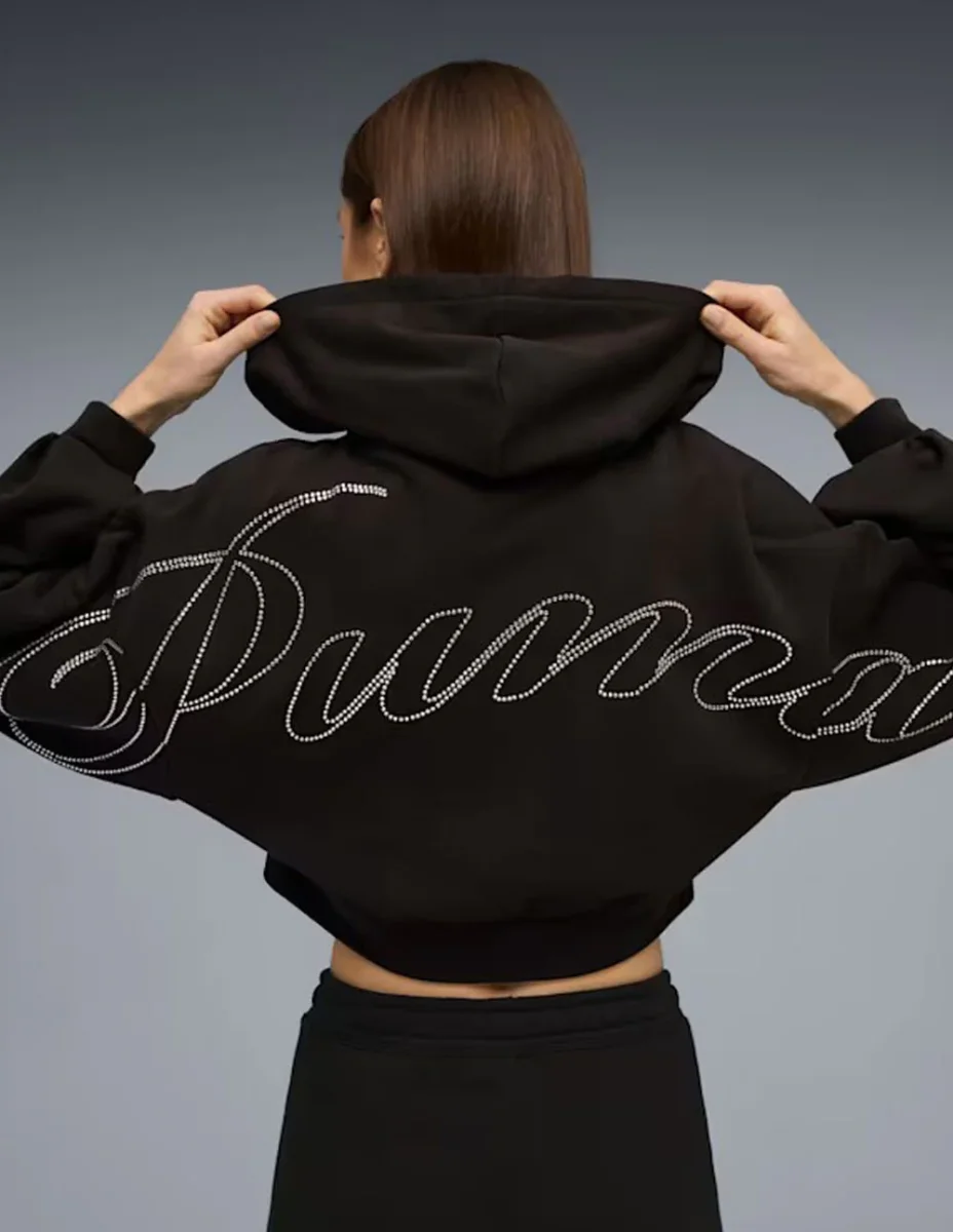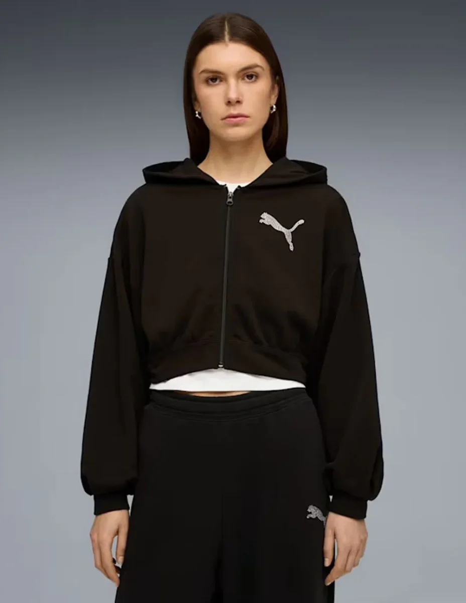 La Chaqueta Puma Essentials Graphics Bedazzled Negra combina estilo deportivo y diseño llamativo. Su estética moderna con detalles gráficos aporta personalidad, ideal para looks casuales o urbanos. Prenda versátil que ofrece comodidad y presencia actual, perfecta para completar conjuntos diarios con un toque dinámico y contemporáneo.