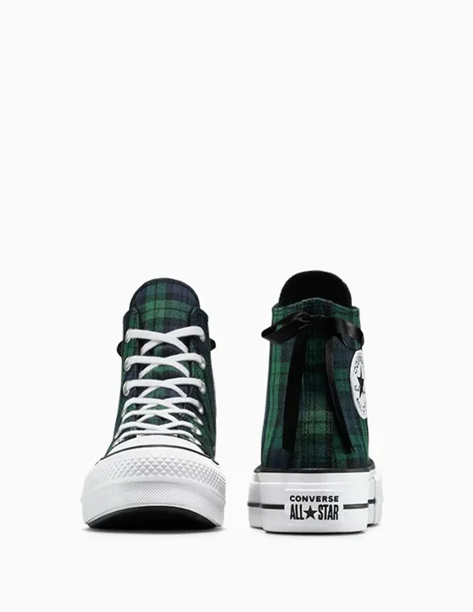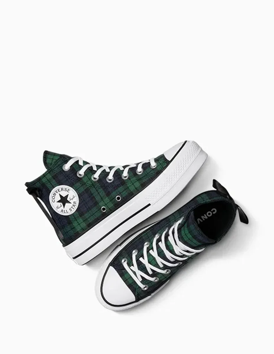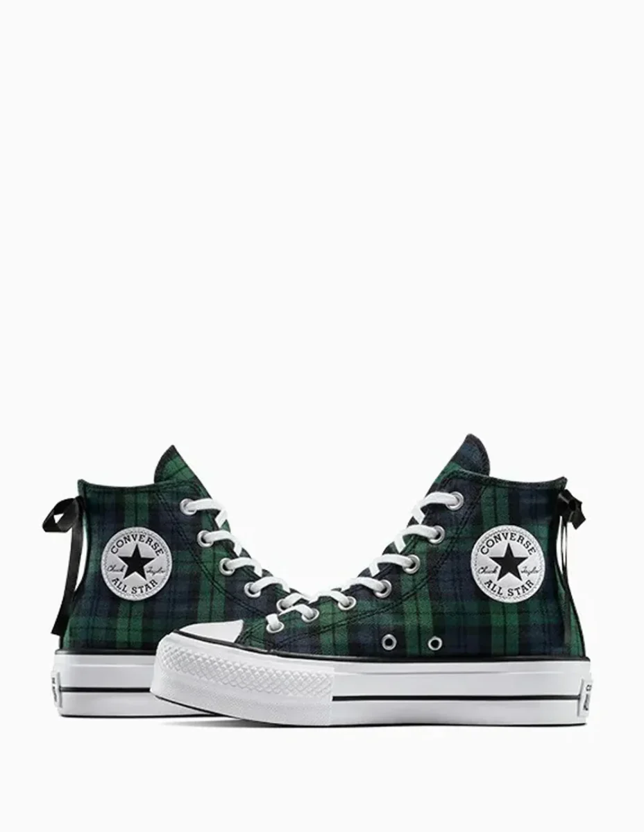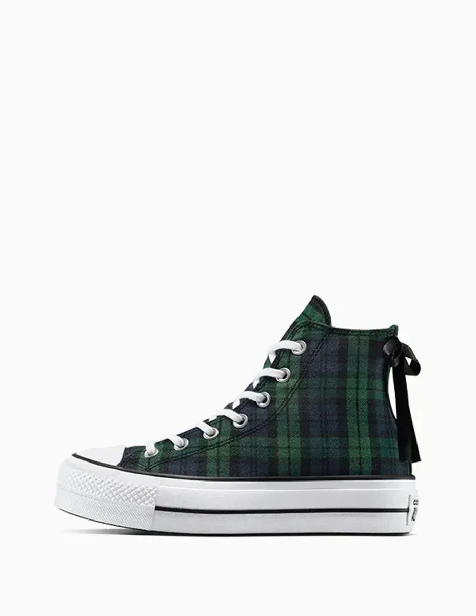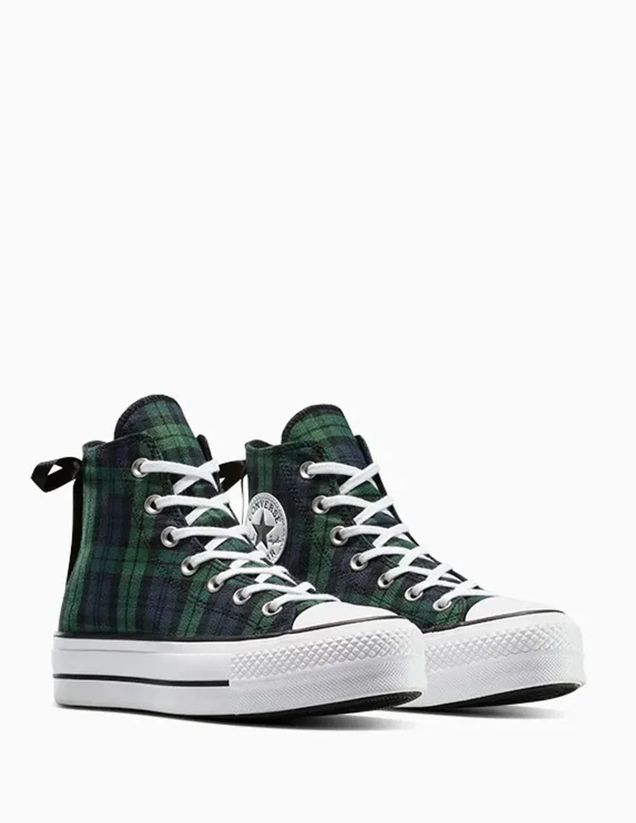Las Converse Chuck Taylor All Star Lift Platform Plaid Verdes reinventan un clásico con un estampado a cuadros vibrante y una suela de plataforma que aporta altura y estilo. Su diseño combina lo tradicional con un toque moderno, ideal para destacar en looks urbanos con personalidad y actitud única.