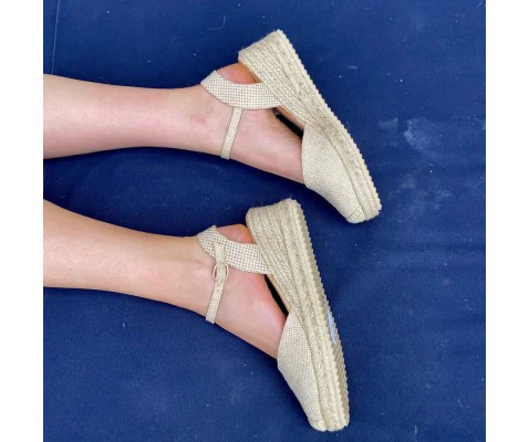 ● Cuña de esparto natural con diseño de 4 cuerdas trenzadas