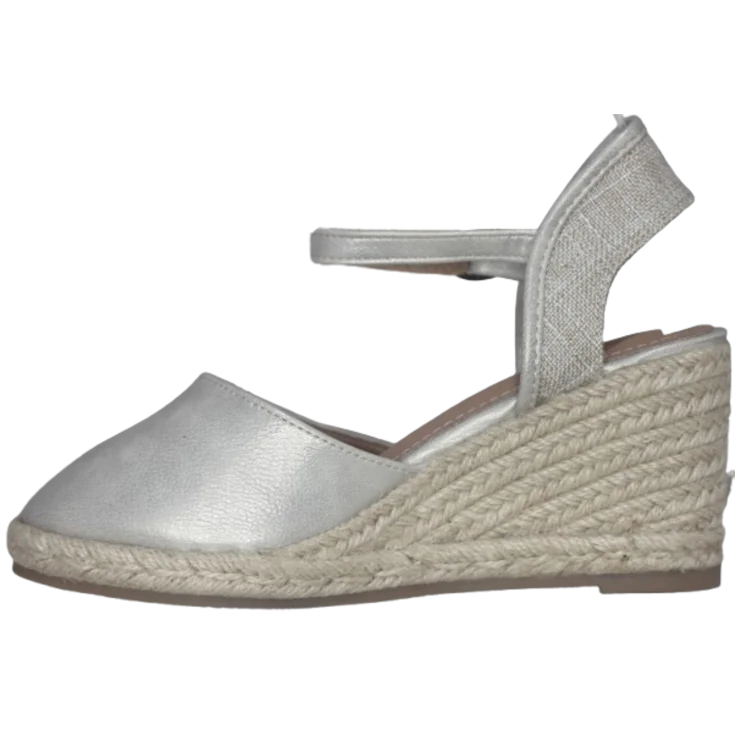La Cuña de Esparto Andalucía Platino es la fusión ideal entre elegancia sofisticada y tradición mediterránea. Su acabado en tono platino aporta un brillo sutil y refinado, mientras que la cuña de esparto natural mantiene ese carácter artesanal que nunca pasa de moda. Un modelo diseñado para realzar tus looks de verano con un toque femenino, luminoso y muy versátil.