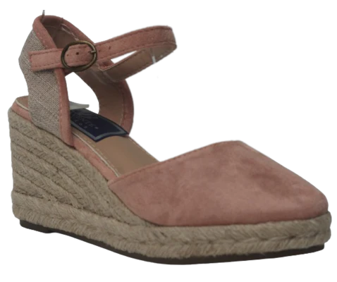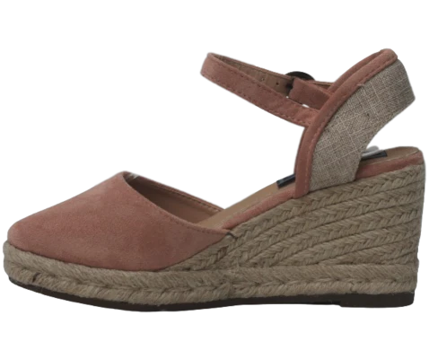 Cuña de esparto Azahar para mujer, en color nude. Cuña media de 6 cuerdas y 2 cuerdas en plataforma. Tacón de 7,5 cm y plataforma de 2 cm. Cierre de hebilla con tira al tobillo. Cerradas en punta y talón destalonado. Plantilla cómoda. Magníficas para combinar con unos vaqueros y una camiseta básica.