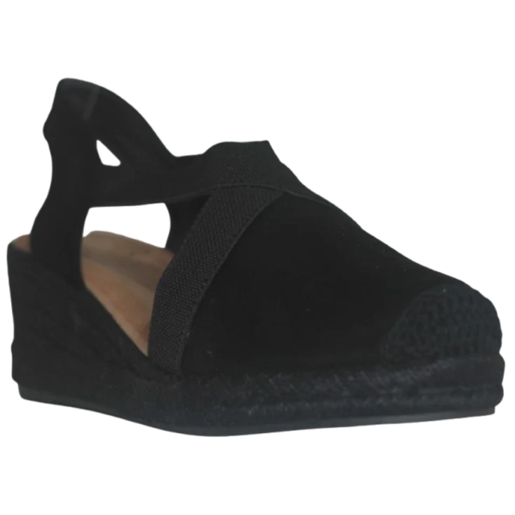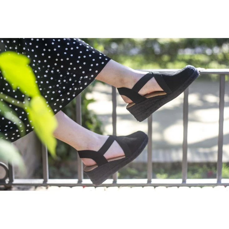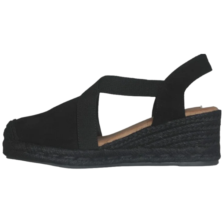 La Cuña de Esparto Enero Negro/Negro 4 Cuerdas es la combinación perfecta entre elegancia minimalista y carácter atemporal. Su diseño en color negro total aporta un estilo sofisticado y versátil, mientras que la cuña de esparto forrada en negro mantiene la esencia artesanal con un toque moderno y actual. Ideal para quienes buscan una cuña cómoda y fácil de combinar en cualquier ocasión.