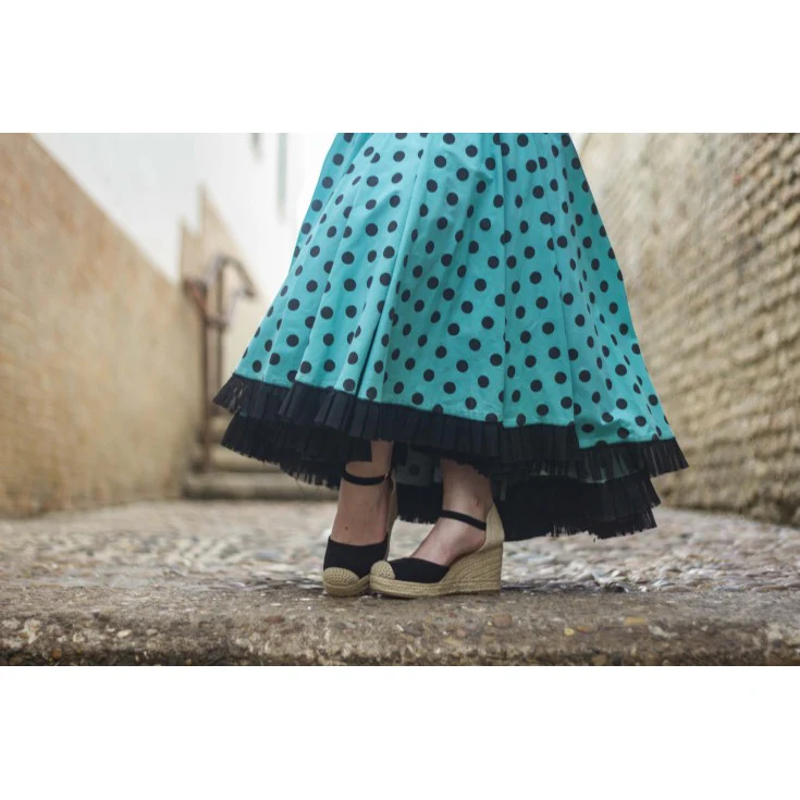 La Cuña Flamenca Negro es ideal para quienes buscan un zapato con personalidad para eventos o momentos especiales. Su diseño estructurado y su color atemporal la convierten en una aliada versátil para tu vestuario.