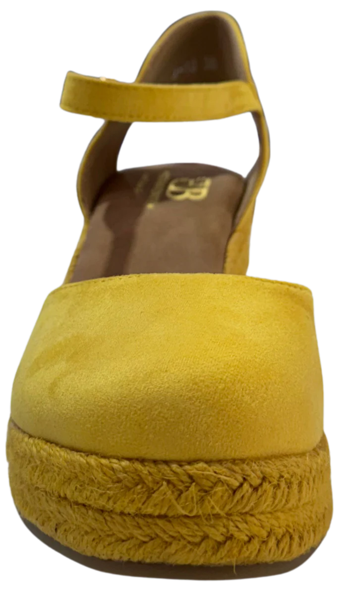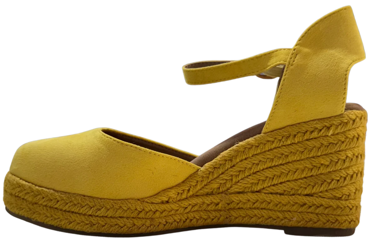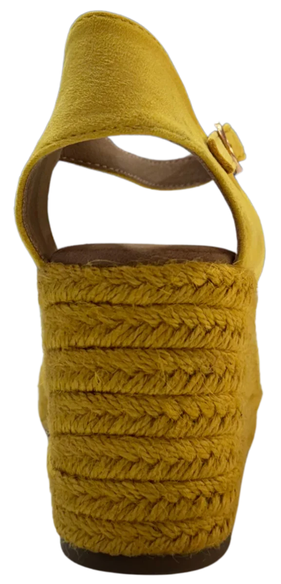 Aporta luz y estilo a tus looks con la Cuña de Esparto Nerja 8 Cuerda en color mostaza, un diseño que combina tendencia y esencia mediterránea. Su tono vibrante y su cuña trenzada crean un calzado perfecto para destacar con elegancia y frescura en los días más cálidos.