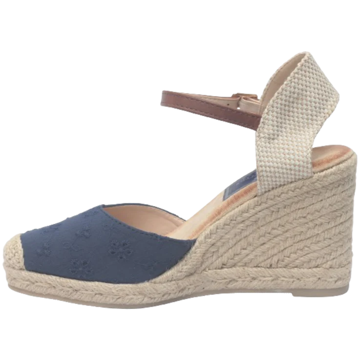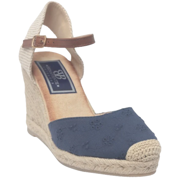La Cuña de Esparto Valle Azul es la mezcla perfecta entre frescura y elegancia natural. Su tono azul profundo con delicado bordado aporta un aire romántico y sofisticado, ideal para dar un toque especial a tus looks de primavera y verano sin renunciar a la comodidad.