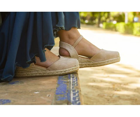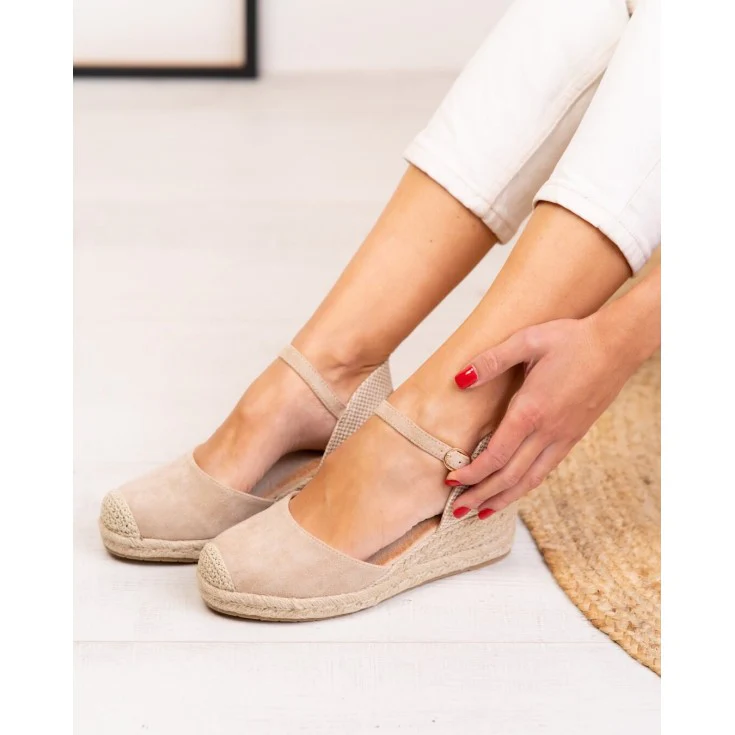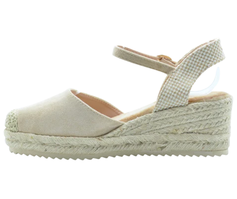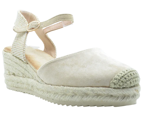 Diseñada para acompañarte en tu día a día con ligereza y estilo, esta cuña de esparto en color beige destaca por su acabado suave efecto ante y su pulsera ajustable al tobillo que aporta sujeción y estabilidad. La plantilla memory foam se adapta al pie proporcionando una sensación de descanso continuo, ideal para jornadas largas o eventos especiales.