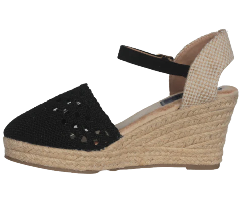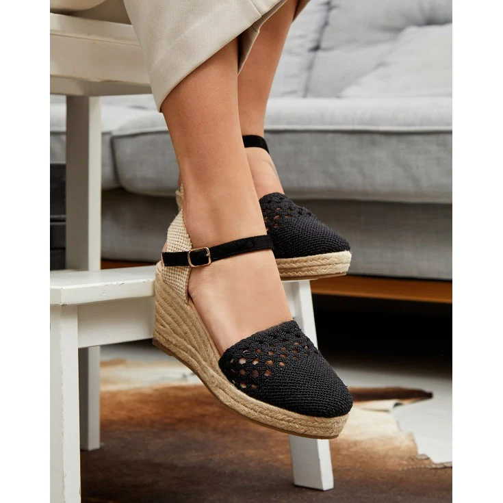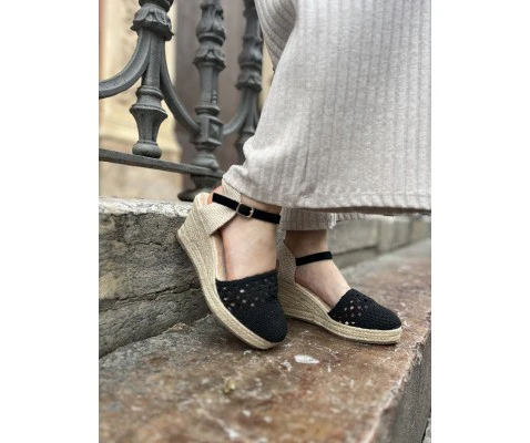 La Cuña de Esparto Negra ofrece una estética neutra y elegante, pensada para complementarse con tonos claros, oscuros o combinaciones cromáticas más atrevidas sin competir con el resto del estilismo.