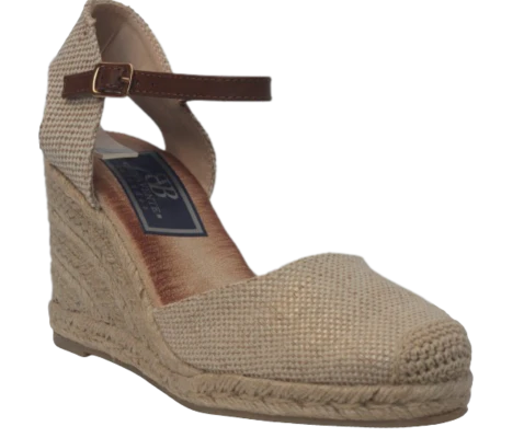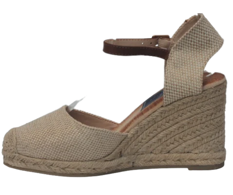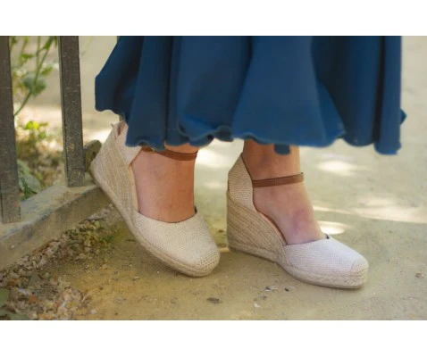 Diseñada para acompañarte desde la mañana hasta la noche, esta cuña de esparto en tono apricot destaca por su acabado textil natural y su pulsera ajustable al tobillo que aporta sujeción y estabilidad. La cuña estiliza la figura mientras la plantilla memory foam se adapta al pie ofreciendo una sensación de descanso continuo.