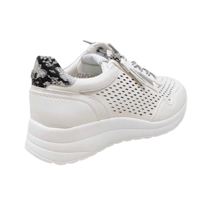 Deportiva casual Lana Mustang para mujer, diseñada en color beige, está fabricada con paneles de diseño calado. Estampado de serpiente en la trasera, como detalle también incuye una tachuela con el logo de la marca. Construcción de cuña que te dará comodidad en cada paso. Cremallera funcional en el lateral para mayor comodidad.