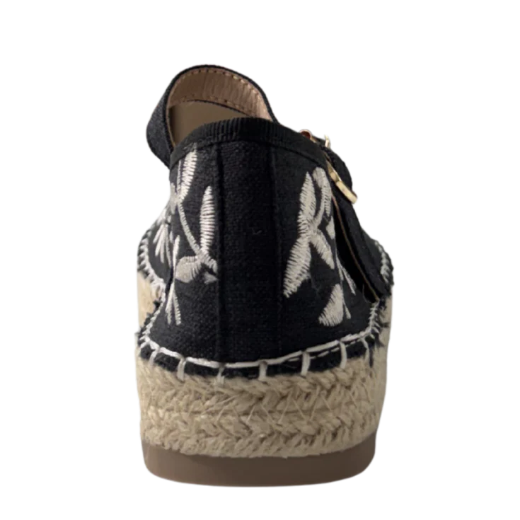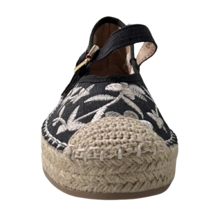 La Esparto Baja Negro Brillante Zoe es la combinación perfecta entre estilo artesanal y elegancia veraniega. Su diseño en negro con bordado floral aporta un toque sofisticado y femenino, mientras que la base de esparto natural mantiene ese aire mediterráneo fresco y atemporal.