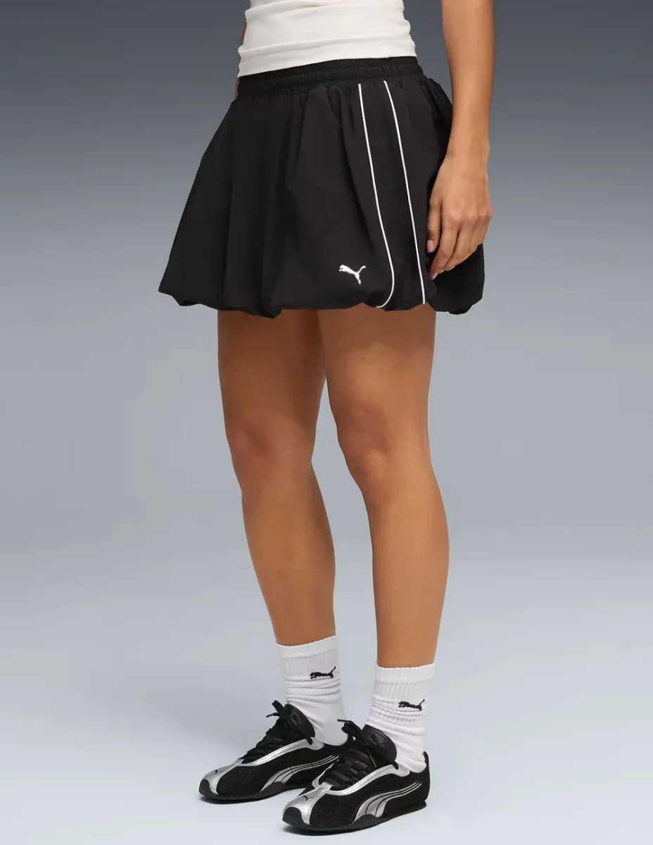 La Falda Globo Puma T7 Negra combina silueta moderna y estilo deportivo. Su diseño con volumen aporta un aire actual y femenino, ideal para looks urbanos o conjuntos casuales. Prenda versátil que ofrece comodidad y personalidad, perfecta para crear combinaciones dinámicas con un toque contemporáneo y fácil de adaptar al día a día.