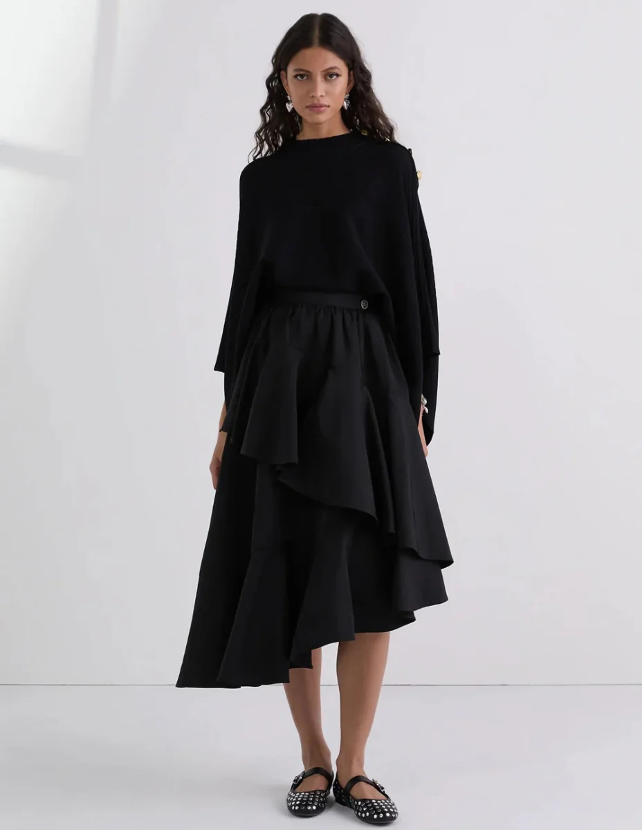La Falda Karl Lagerfeld con Volantes Negra resalta por su diseño femenino y dinámico. Su estructura fluida aporta movimiento elegante en cada paso. El tejido de calidad garantiza comodidad durante todo el día. El tono añade versatilidad, permitiendo combinarla con múltiples estilos para un look sofisticado y actual, siempre.