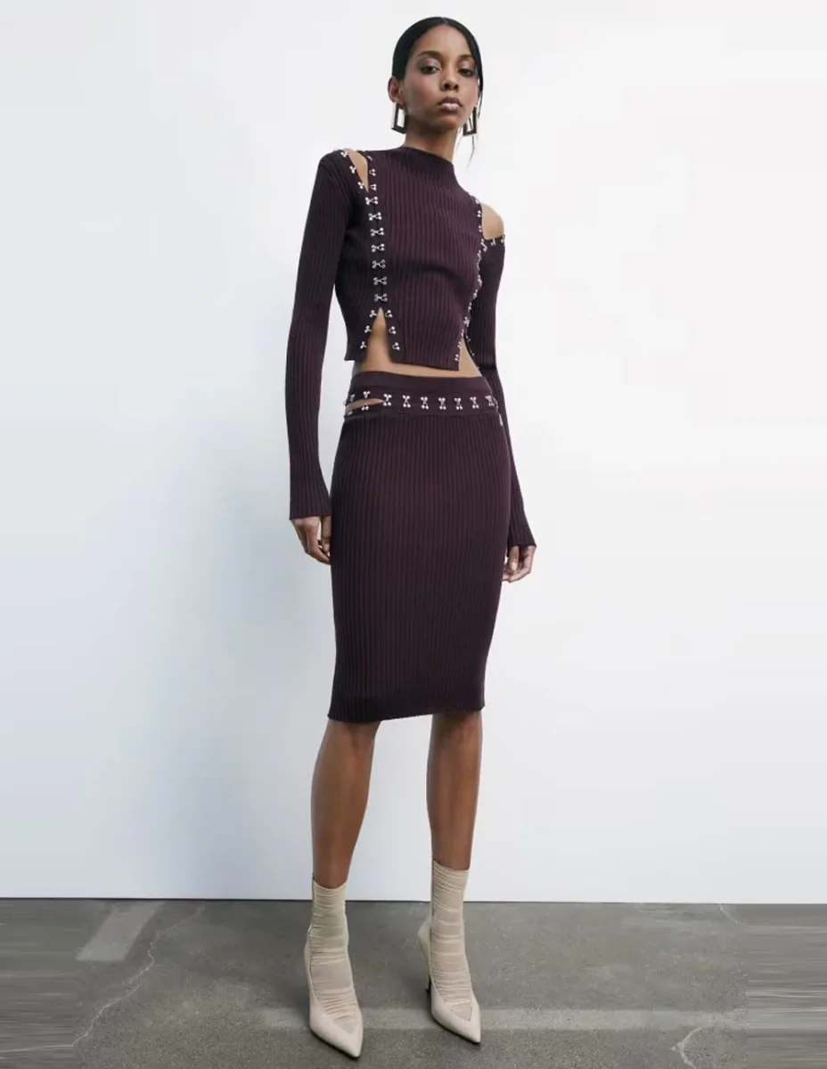 La Falda Patrizia Pepe de Punto Glam Rock Morada destaca por su estilo sofisticado y moderno, con un diseño de punto que realza la silueta. Su confección suave aporta comodidad durante todo el día. Ideal para looks urbanos o nocturnos, combina elegancia, carácter y versatilidad con un acabado cuidado y contemporáneo.