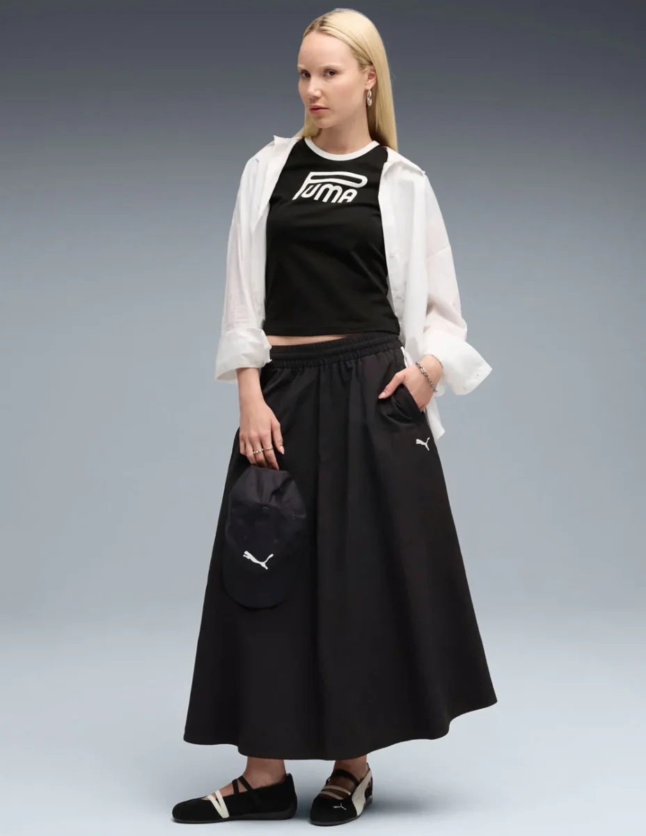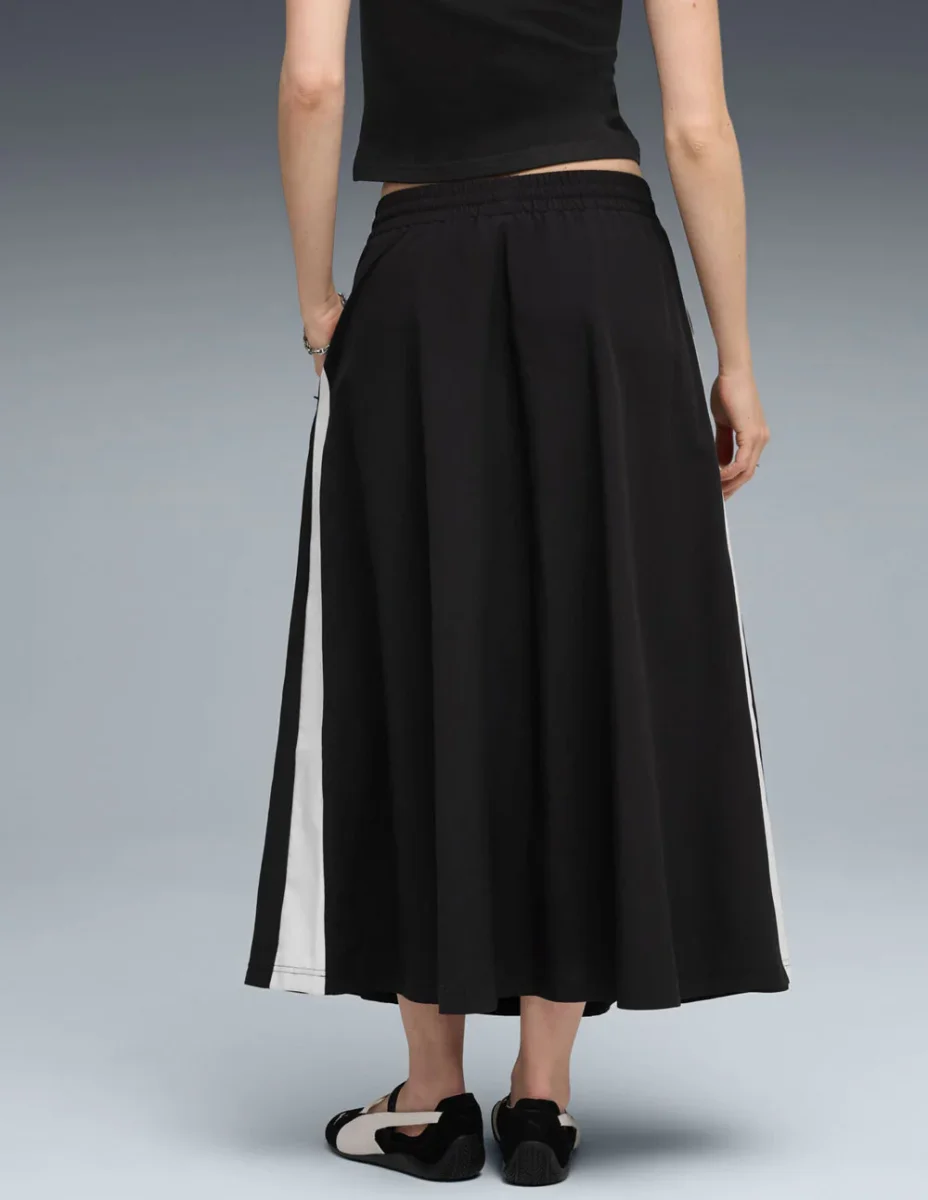 La Falda Puma T7 Midi Negra combina un corte elegante con el clásico estilo deportivo de la marca. Su diseño entallado y detalles laterales aportan un toque moderno y versátil. Ideal para looks urbanos o casuales, ofrece comodidad y personalidad en cada paso. Un básico con carácter propio.