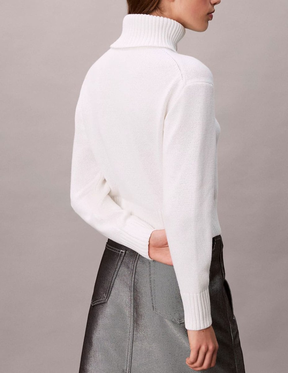 El Jersey Calvin Klein Jeans de Cuello Vuelto de Chenilla Blanco destaca por su textura suave y cálida, ideal para los días fríos. Su cuello vuelto aporta un estilo elegante y actual, mientras el tejido de chenilla ofrece máximo confort. Una prenda versátil que eleva looks diarios con sencillez y un acabado sofisticado.