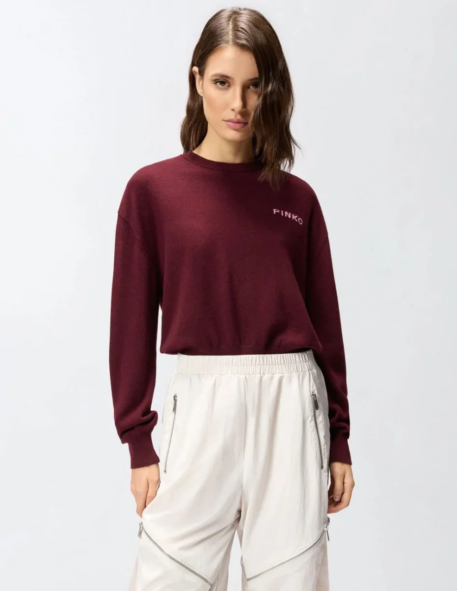 Jersey Pinko con Logo Love Birds Burdeos Mujer