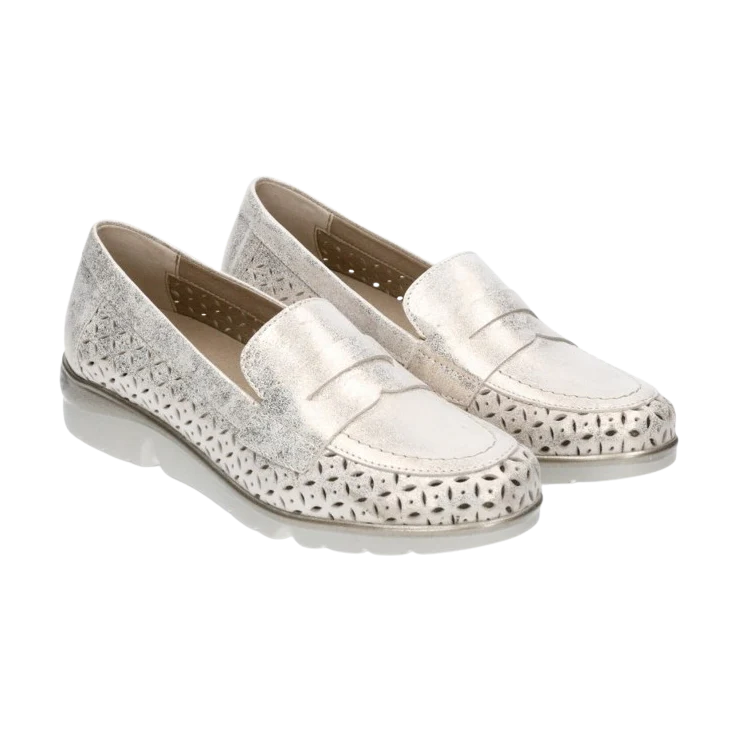 Mocasín Pitillos Oro con Picados