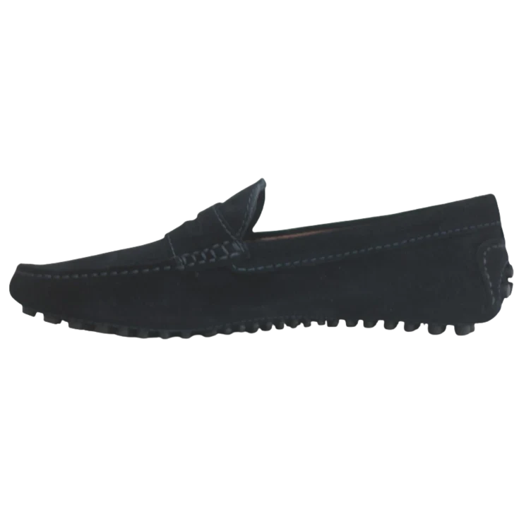 Al calzarlo, la piel serraje envuelve el pie con una sensación de firmeza amoldada al contorno, y la textura ligera aporta frescura. El color azul profundo transmite elegancia con un aire veraniego y casual, mientras la suela de goma dota de ligereza y seguridad en cada paso.