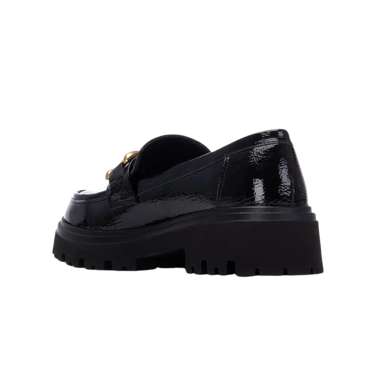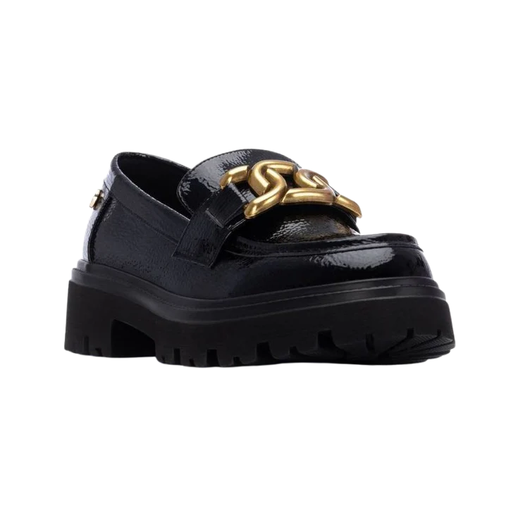 El Mocasín XTI Negro Charol es la fusión perfecta entre elegancia clásica y estilo moderno. Su acabado brillante y su detalle metálico en dorado elevan cualquier look, aportando un toque sofisticado y actual que no pasa desapercibido. Ideal para quienes buscan un calzado versátil, cómodo y con personalidad.