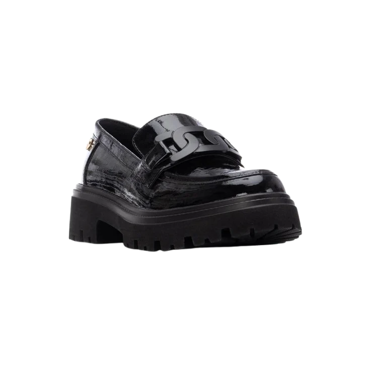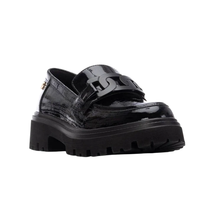 El Mocasín XTI Sra Charol Negro es la combinación perfecta entre elegancia atemporal y estilo moderno. Su acabado brillante y su diseño minimalista lo convierten en un imprescindible de fondo de armario para cualquier temporada. Ideal para quienes buscan un calzado versátil que eleve cualquier look con un toque de sofisticación.