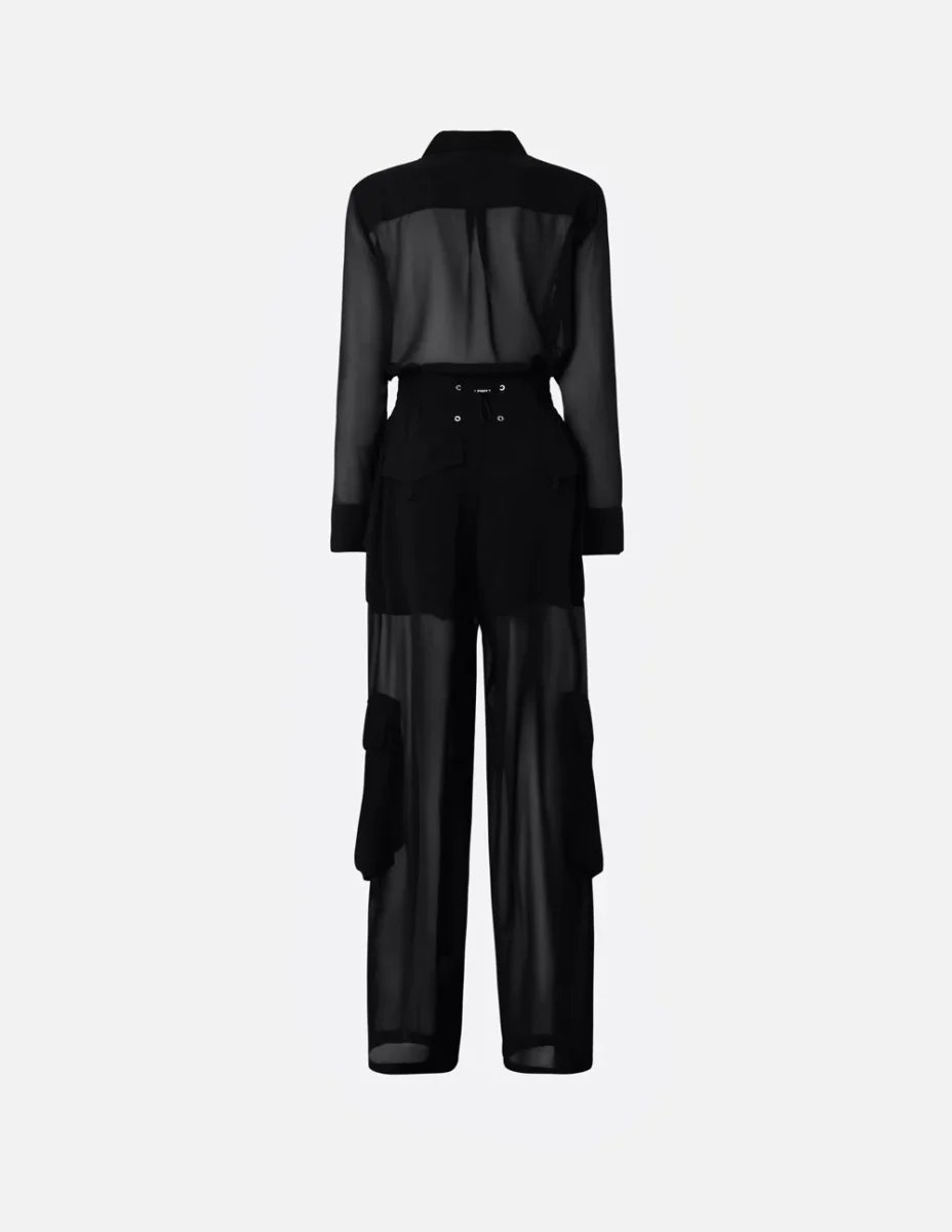 El mono Pinko de Georgette con Bolsillos Cargo Negro es una pieza sofisticada y versátil. Confeccionado en georgette ligero, ofrece comodidad y un ajuste favorecedor. Su diseño en negro con bolsillos cargo le da un estilo moderno y funcional, perfecto para looks urbanos o elegantes con un toque distintivo.