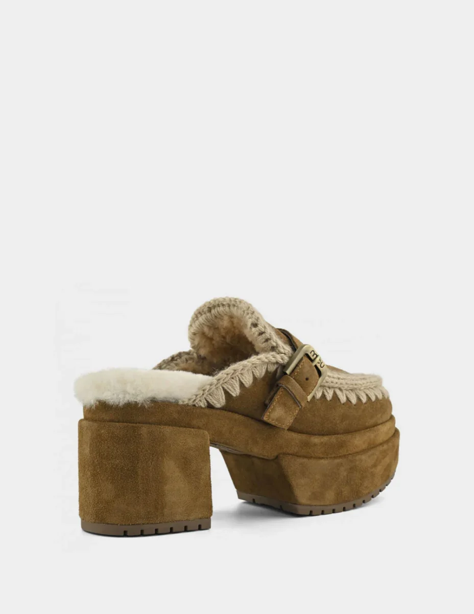 Los MOU Platform Clog Buckle Strap Marrones combinan estilo contemporáneo y confort excepcional. Su diseño con plataforma y correa ajustable ofrece estabilidad y un toque moderno. Elaborados con materiales de alta calidad, aportan suavidad y calidez, siendo perfectos para crear un look casual con elegancia natural.