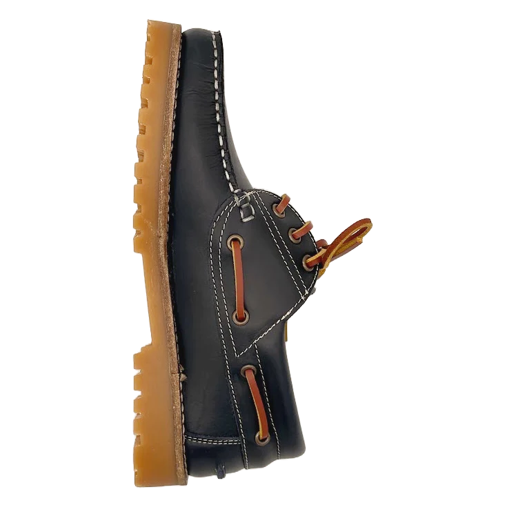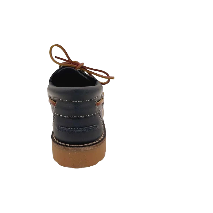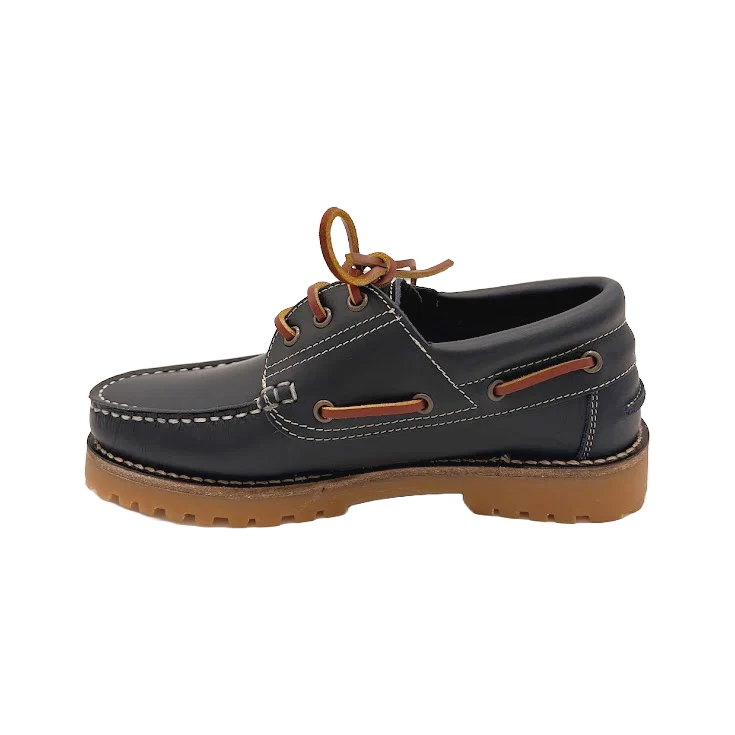 Al calzarte este náutico notarás cómo la piel marino envuelve tu pie con suavidad, mientras los cordones permiten un ajuste personalizado. La suela de goma transmite firmeza y confianza en cada paso, y el color marino profundo aporta una sensación de elegancia sobria que armoniza tanto con looks casuales como más formales.