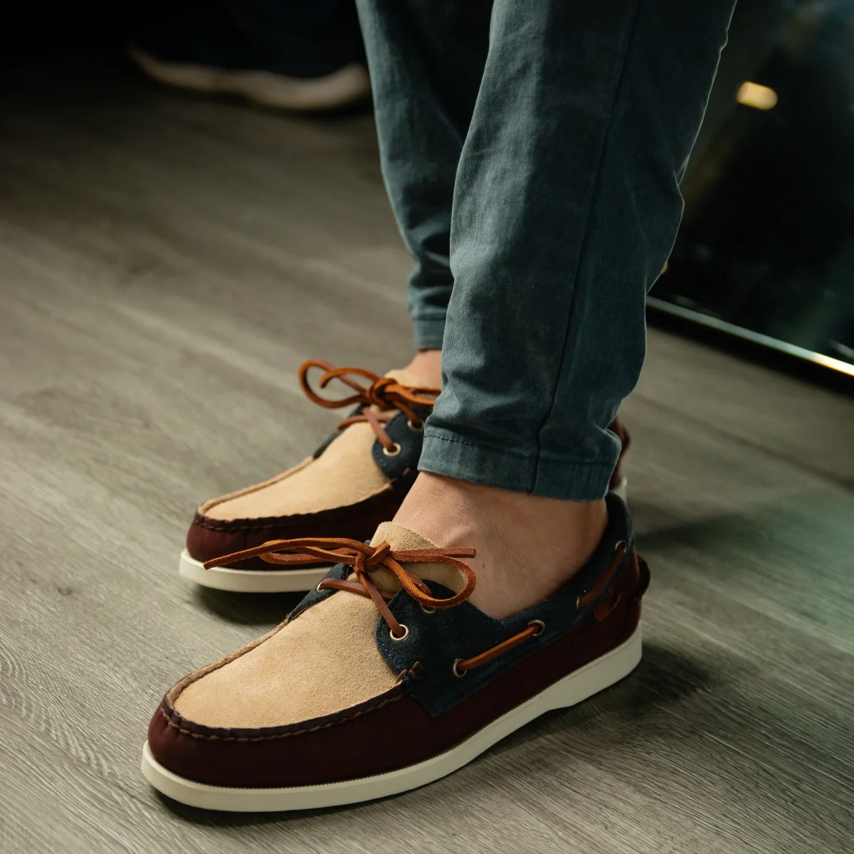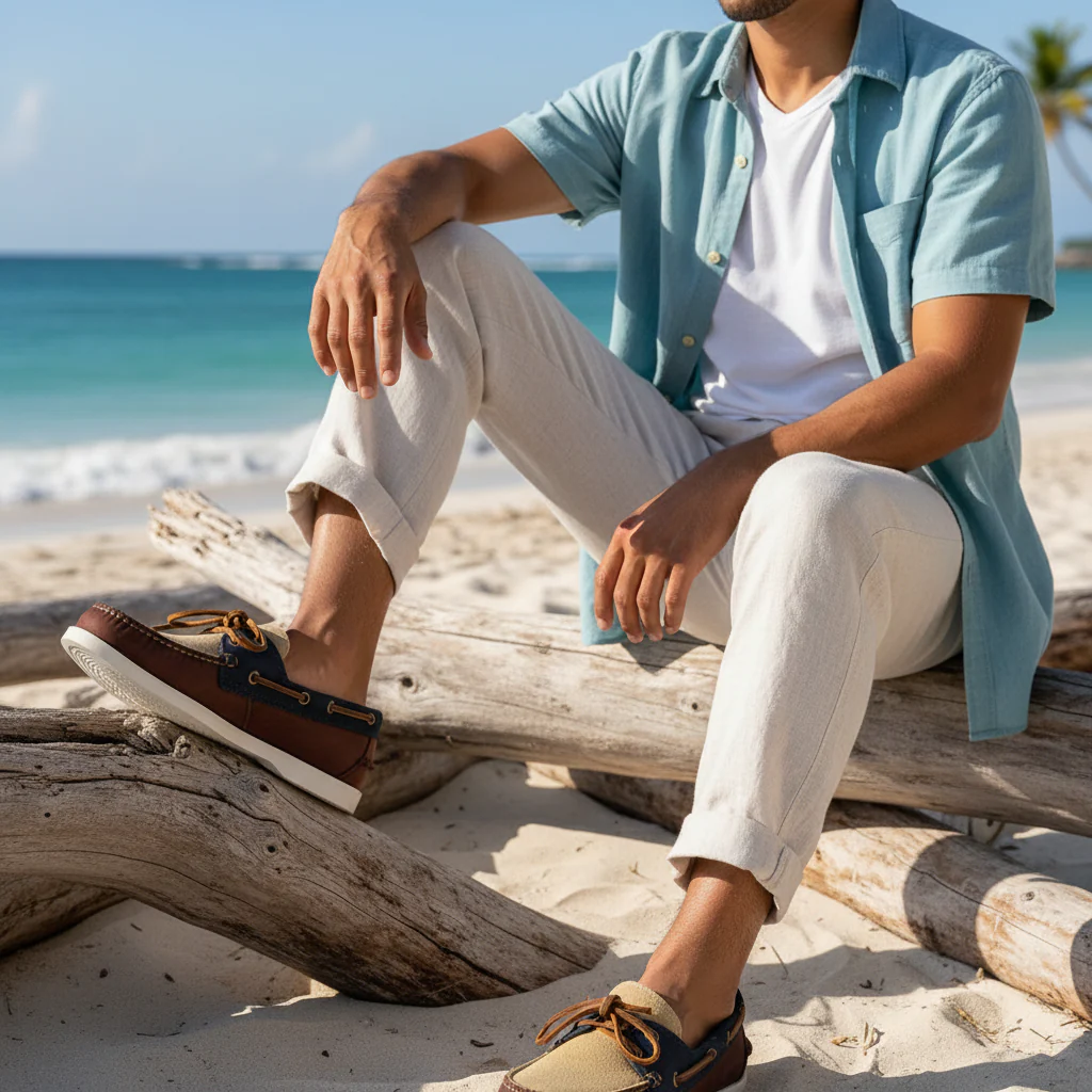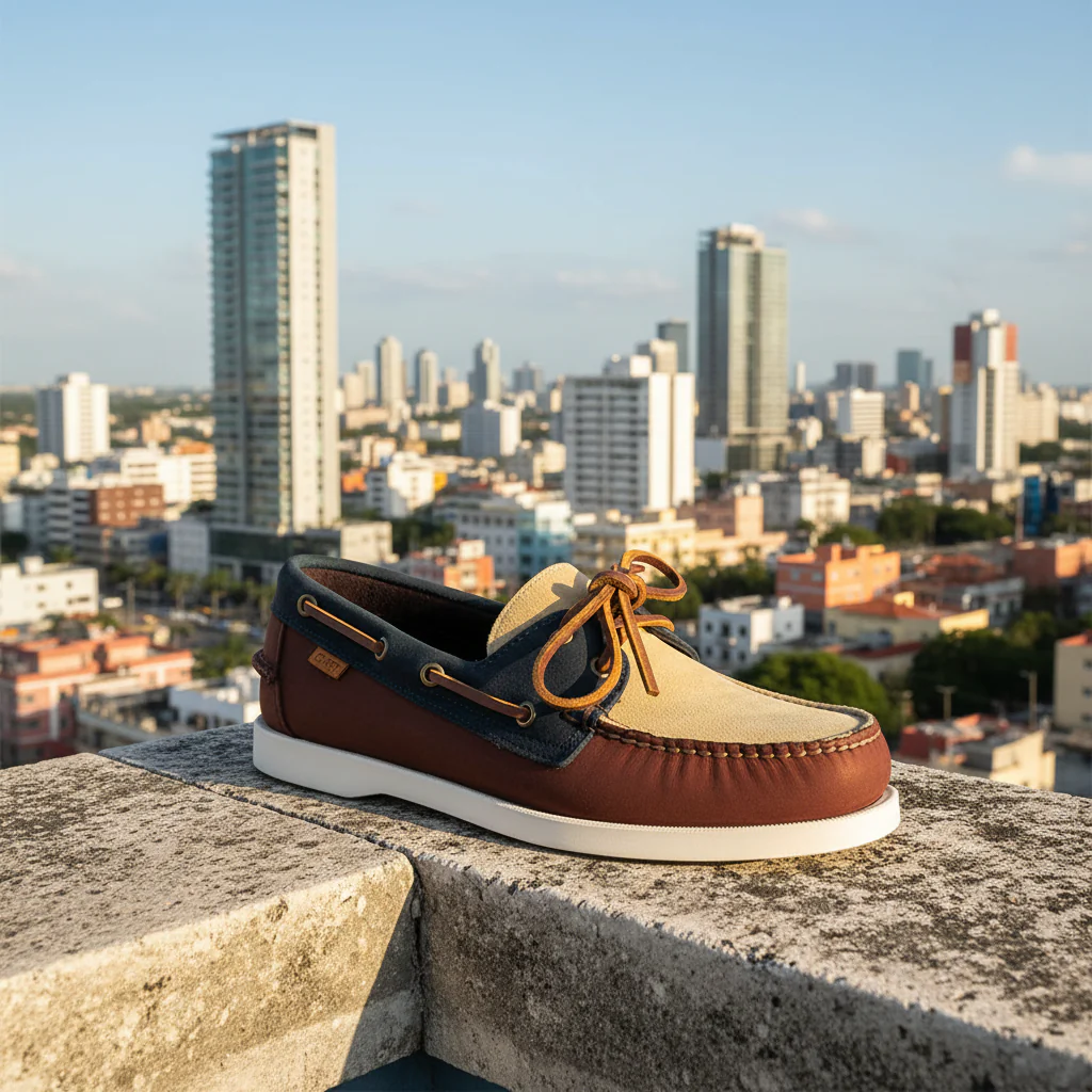 Náutico Dockside en cuero genuino con cosido artesanal, suela antideslizante y un interior suave, perfecto para tus looks casuales diarios.