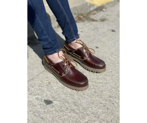 ● Diseño clásico de náutico con cierre de cordones de cuero y entrelazado ornamental alrededor del empeine para mayor detalle estético.