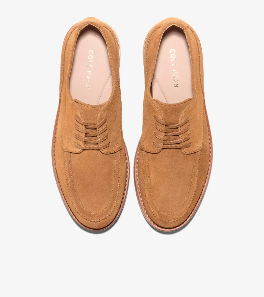 - Parte superior de ante color miel dorado; sistema de cordones de cuatro ojales