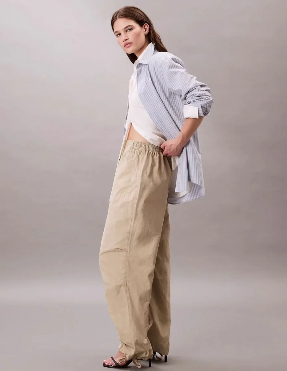 El pantalón Calvin Klein Jeans Parachute Beige es una opción moderna y versátil. Su diseño de inspiración cargo y tejido ligero ofrecen comodidad y estilo en cualquier ocasión. Con un ajuste relajado y detalles funcionales, es perfecto para un look urbano y contemporáneo.