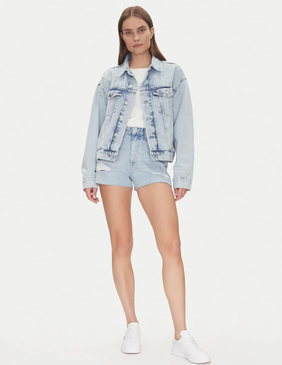 El pantalón corto vaquero Tommy Jeans con Logo Azul es una prenda versátil que combina estilo casual y comodidad. Confeccionado en denim resistente, presenta un diseño atemporal con el detalle del logo que aporta identidad. El color clásico lo convierte en un básico imprescindible para los días más cálidos.