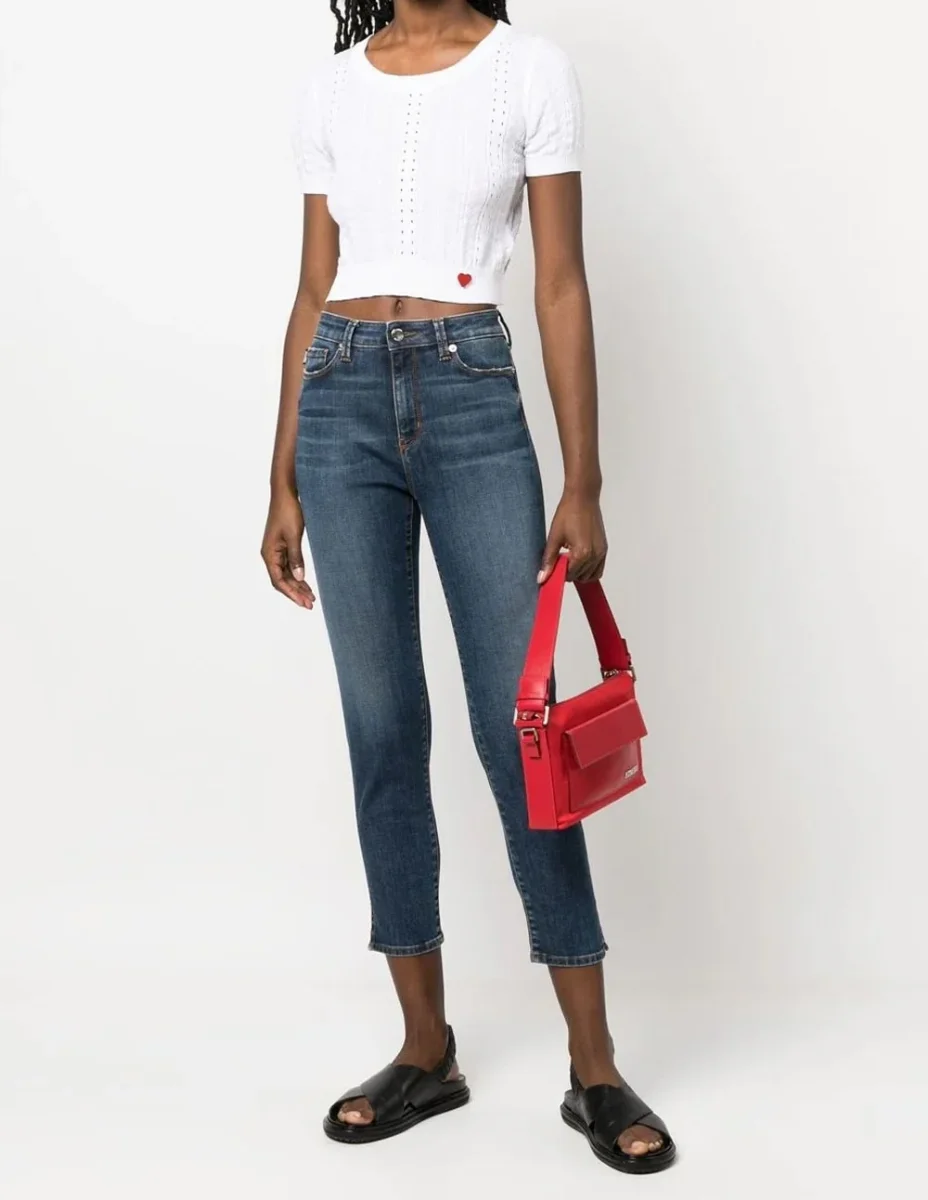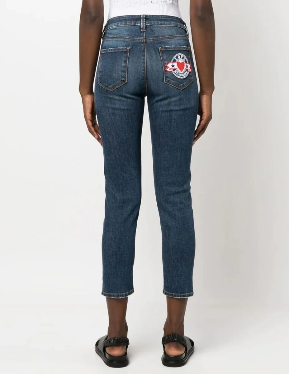 Pantalón Vaquero Love Moschino Logo Patch Azul Mujer