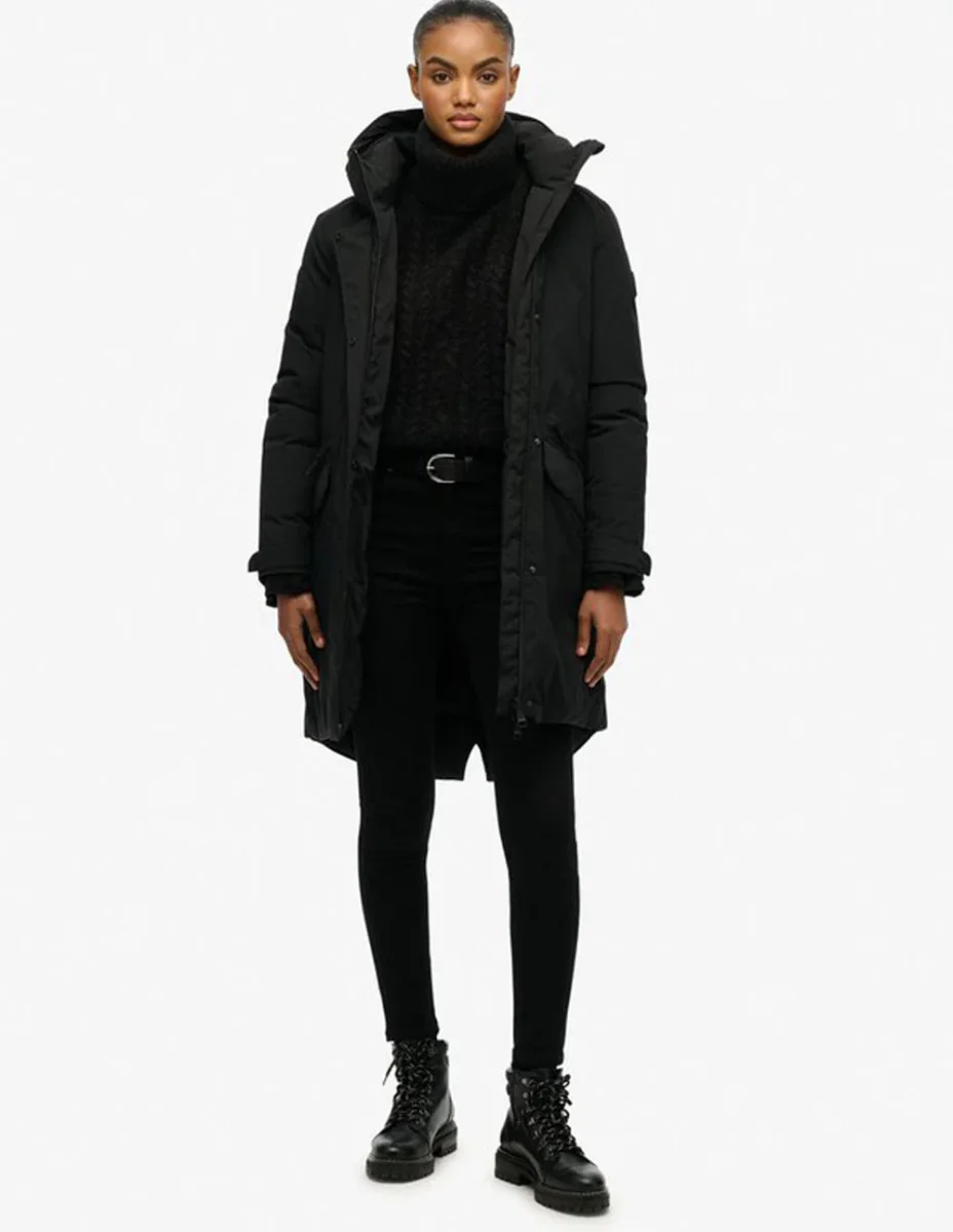La Parka Superdry City Fishtail Negra combina funcionalidad y estilo urbano en un diseño moderno. Su tejido resistente protege del frío y la lluvia, mientras el corte fishtail aporta un toque contemporáneo. Ideal para el día a día, ofrece confort, abrigo y una estética versátil y elegante.