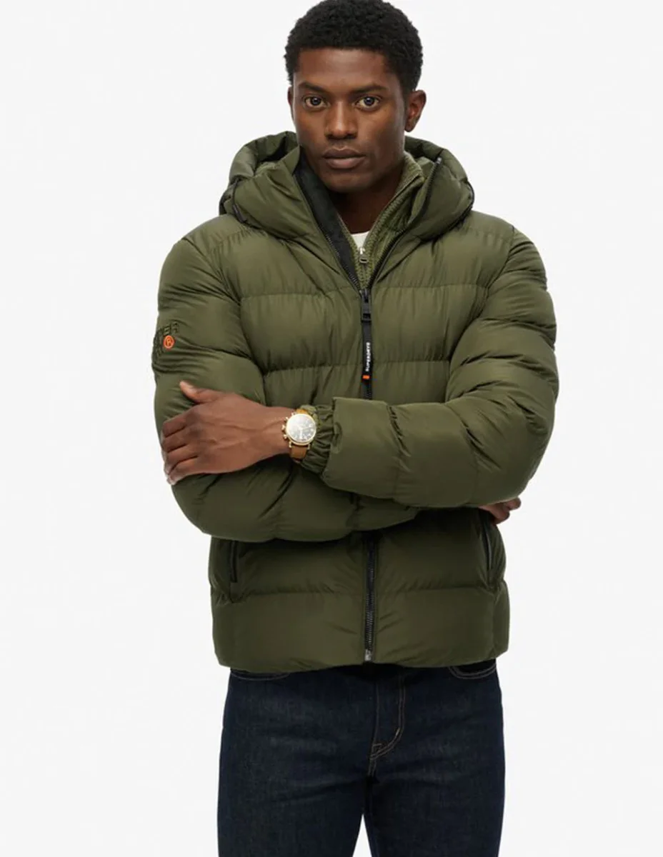 El Plumas Superdry con Capucha Sports Verde ofrece una mezcla equilibrada de estilo y funcionalidad, perfecto para el invierno. Su diseño acolchado asegura calidez y confort, mientras que su ligereza aporta practicidad. Con un acabado moderno y versátil, es ideal para looks urbanos que combinan protección y elegancia en los días fríos.