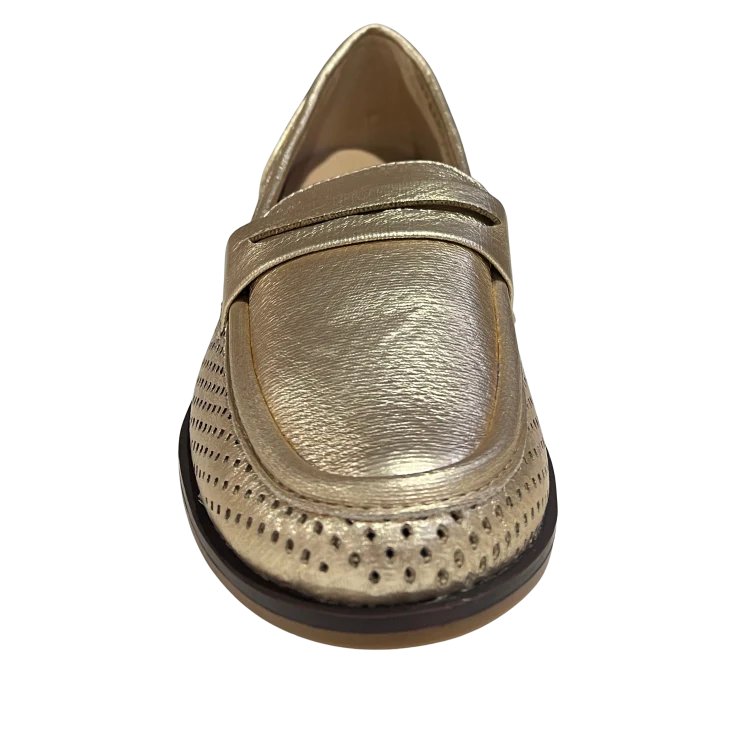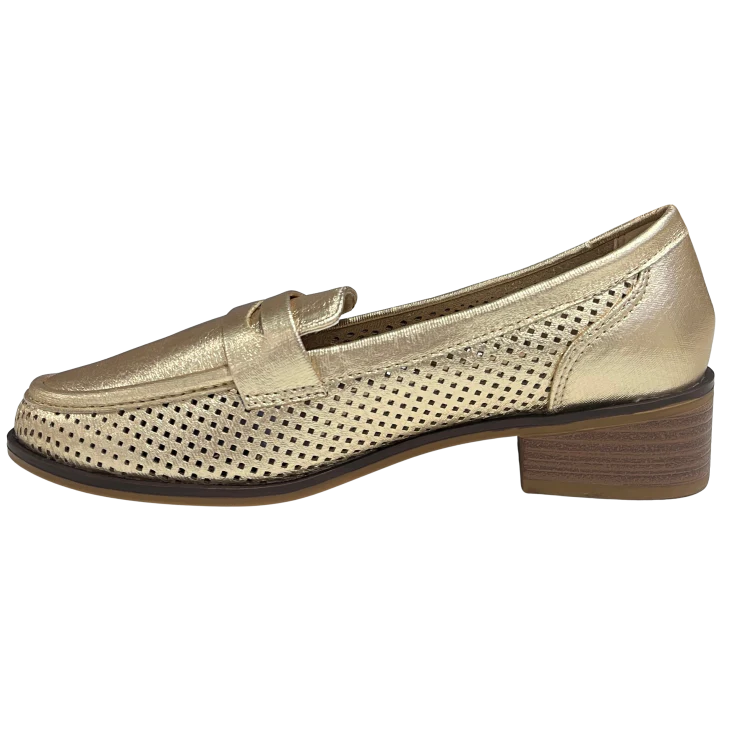 El Salón Mocasín Palma Oro es la definición de elegancia cómoda. Un diseño sofisticado en acabado metalizado dorado que ilumina cada paso y transforma cualquier look en una apuesta segura. Perfecto para mujeres que buscan estilo, distinción y confort en un mismo zapato.