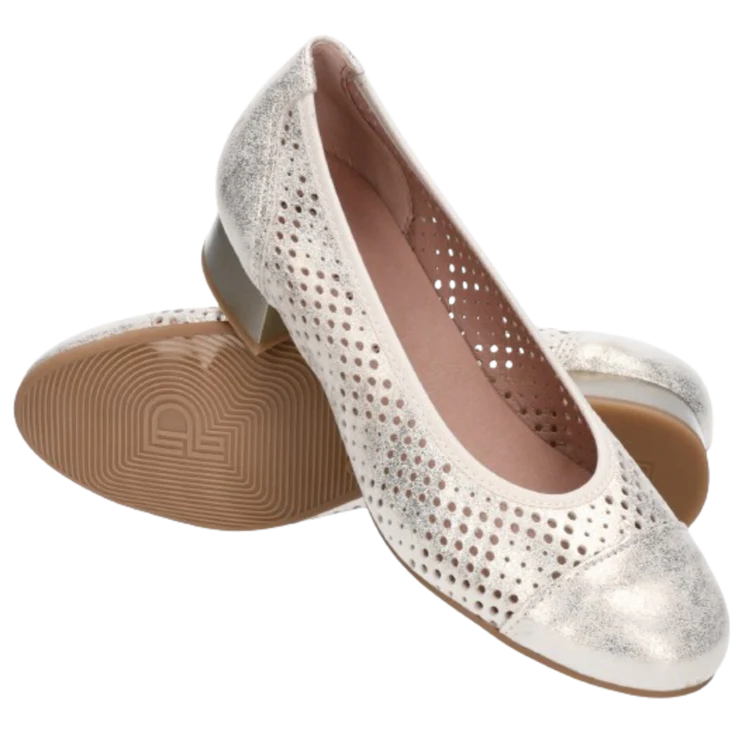 Déjate envolver por el brillo y la artesanía del Salón Pitillos Picados Oro, un modelo que une elegancia metálica con detalles perforados que transmiten ligereza. Ideal para quienes quieren destacar sin renunciar al confort en cada paso.