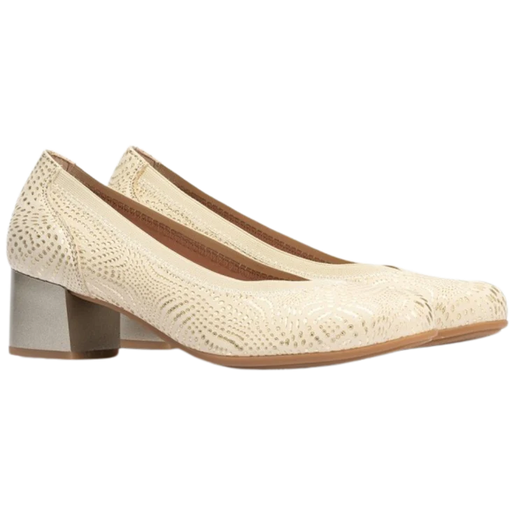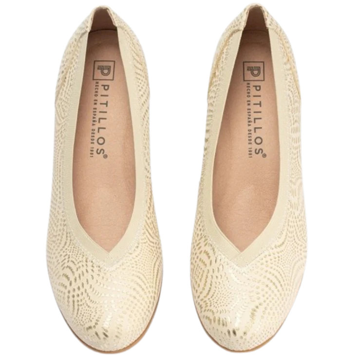 Sumérgete en la sofisticación metálica con el Salón Pitillos Pico Elástico Oro, un modelo diseñado para combinar elegancia y comodidad con un toque moderno. Su acabado dorado intenso aporta luminosidad, mientras su diseño incorpora una estructura elástica en el empeine que acentúa el ajuste sin sacrificar estilo.