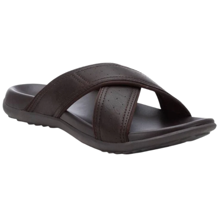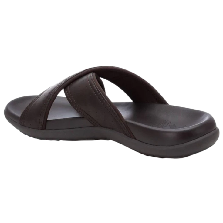 Al caminar, las tiras cruzadas aseguran el pie sin apretar, mientras la suela de goma amortigua el impacto y proporciona una pisada firme y confiable.