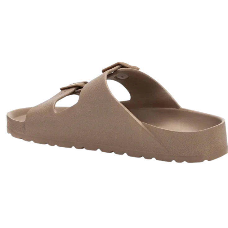 Esta sandalia de doble tira con hebilla en tono taupe reúne diseño contemporáneo y máxima comodidad para los días cálidos. Ideal para el hombre moderno que quiere un calzado casual-elegante sin renunciar al confort.