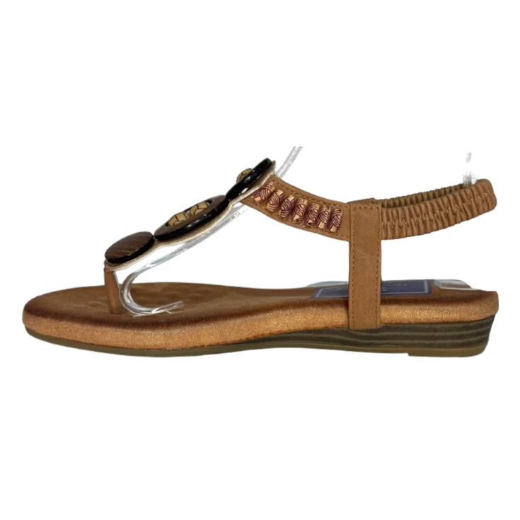 Disfruta de la comodidad absoluta sin renunciar al estilo con nuestra Sandalia Caña Marrón, un modelo de inspiración artesanal que se adapta a tu pie como una segunda piel. Su diseño en tonos tierra, con detalles trenzados y abalorios decorativos, aporta un toque étnico y natural que realza cualquier look veraniego.