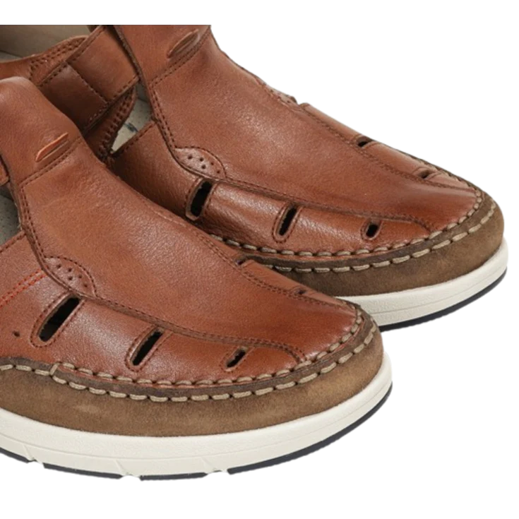Estas cangrejeras de piel cuero ofrecen estructura cerrada-abierta (estilo pescador) con buen soporte y estilo casual-elegante, perfectas para paseos veraniegos o para complementar atuendos informales con un toque cuidado.