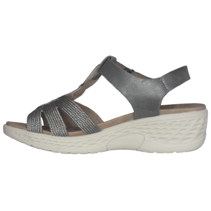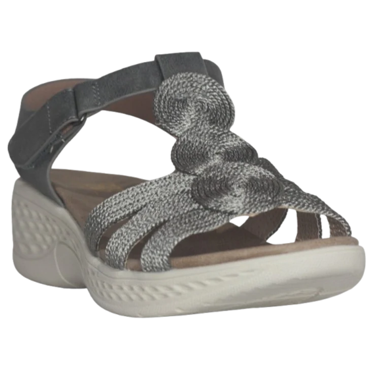 Sandalia cómoda Siriane plomo, Elaborada con materiales de alta calidad, esta sandalia está pensada para quienes buscan estilo sin renunciar a la comodidad. Perfecta para acompañarte en cualquier ocasión, plataforma de 2 cm y cuña de 5 cm, modelo con cierre de velcro lateral. Piso de goma antideslizante.