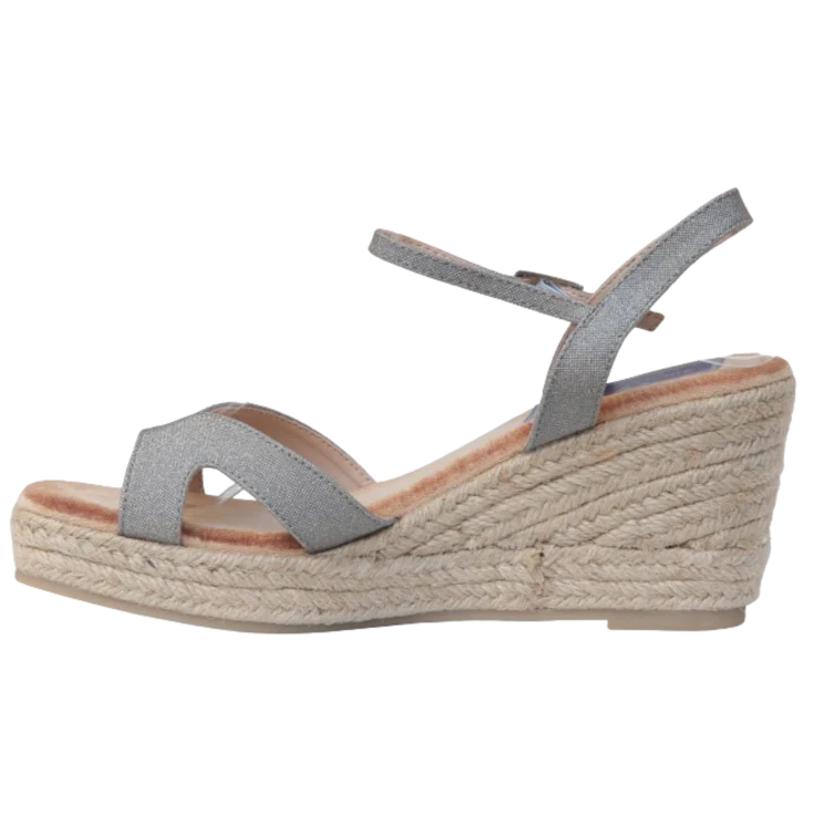 El acabado plata refleja la luz con sutileza, proyectando destellos delicados que acompañan cada paso. Las tiras abrazan el pie con suavidad sin generar presión, mientras que la estructura de cuña + plataforma distribuye bien el peso para una pisada equilibrada. El interior suave reduce el roce, haciendo que cada paso sea firme y cómodo.